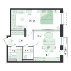 Продаётся 2-комнатная квартира в строящемся доме (Театральный, к2), срок сдачи: II-кв. 2026, общей площадью 51.5 кв.м., на 2 этаже. Бутик-квартал ''G3 Театральный''