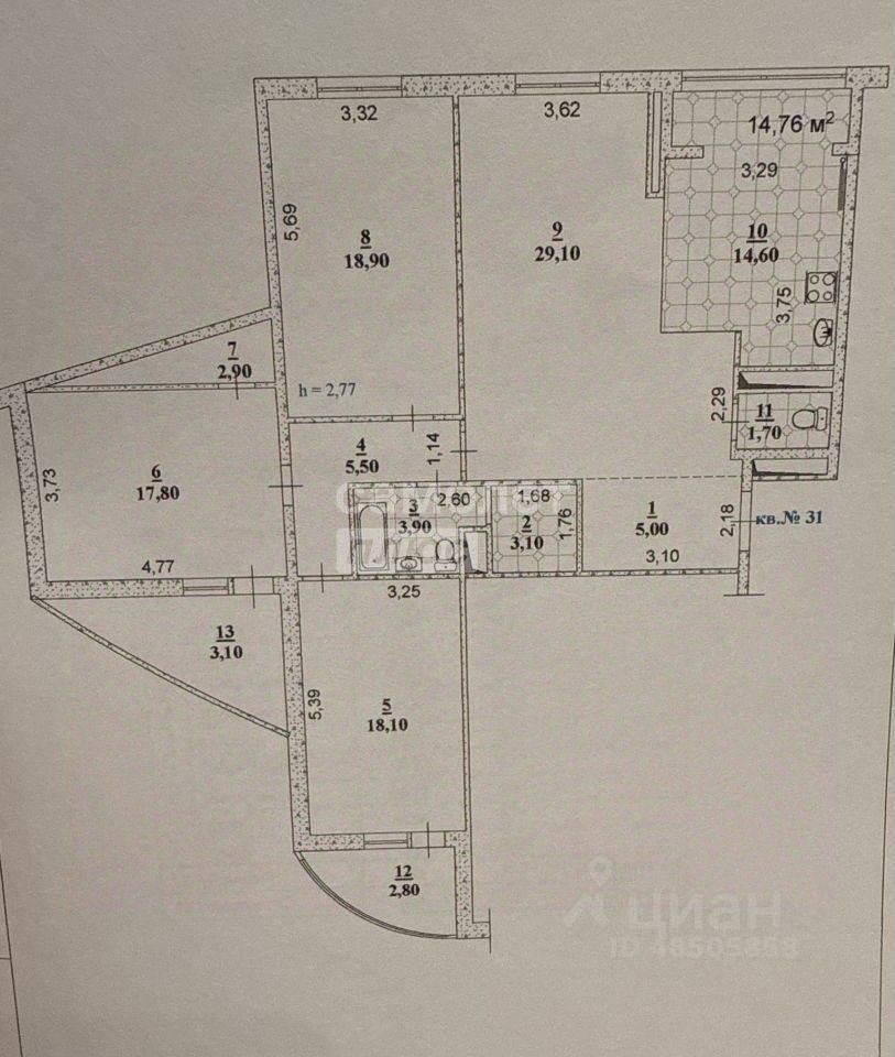34 м² · Этаж 9 из 9