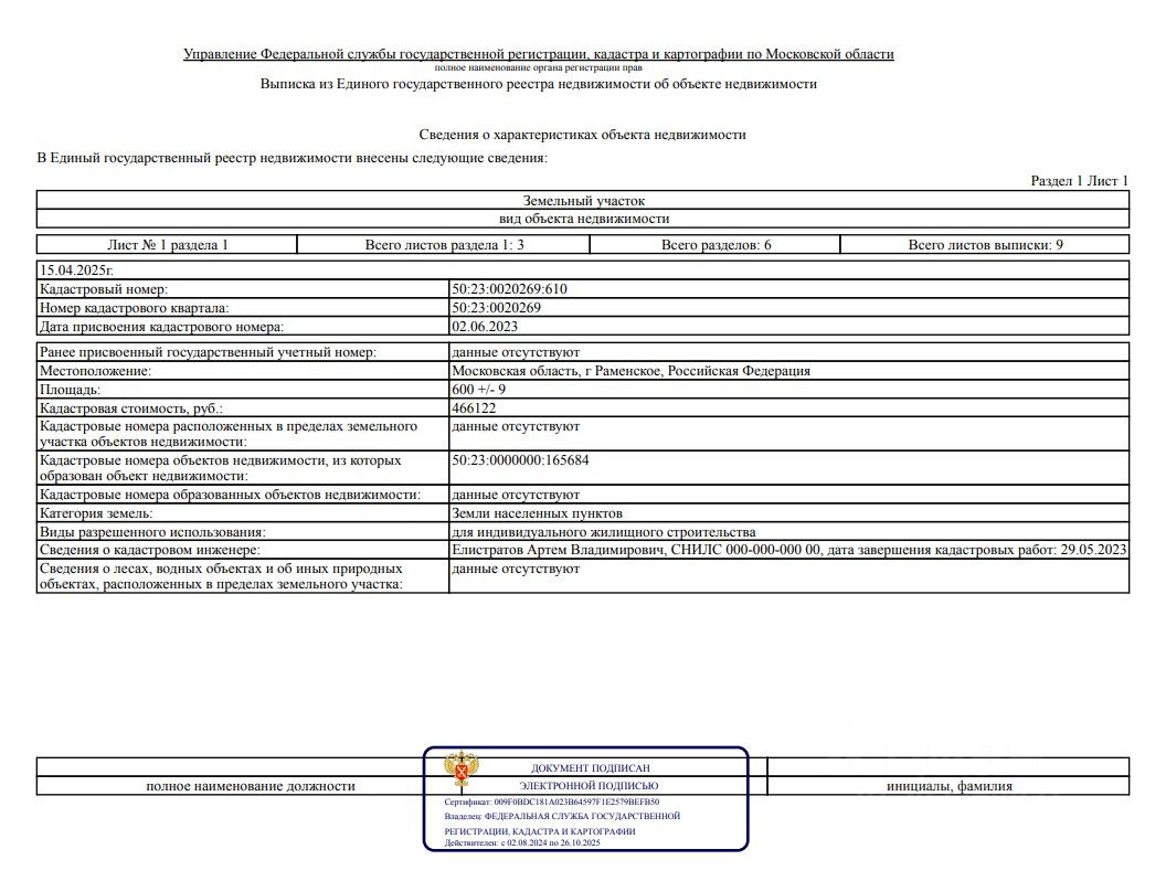 Срочно! ЦЕНА НА НЕДЕЛЮ!Продается земельный участок в черте г. Paмeнское, в 30 км oт Моcквы по Hoвoрязaнcкому или Eгopьeвскoму шоccе.ИЖС-переведен! Хорошей, правильной формы, сухой, забор с 3 сторон(существенная экономия на строительстве, сейчас построить забор стоит 300-500тр), соседи построились.(фото не актуальные) По меже электричество. Газ у соседей. Дорога асфальтированная. Улица Брусничная. Вся городская инфраструктура в пешей доступности. Детский сад и школа, супермаркеты ''Ашан'', ''Перекресток'', ''Дикси'', строительный и садовый рынки. МЦД(наземное метро) в 10 минутах езды. Активная застройка массива, прекрасное место для жизни. Собственник. 50:23:0020269:610