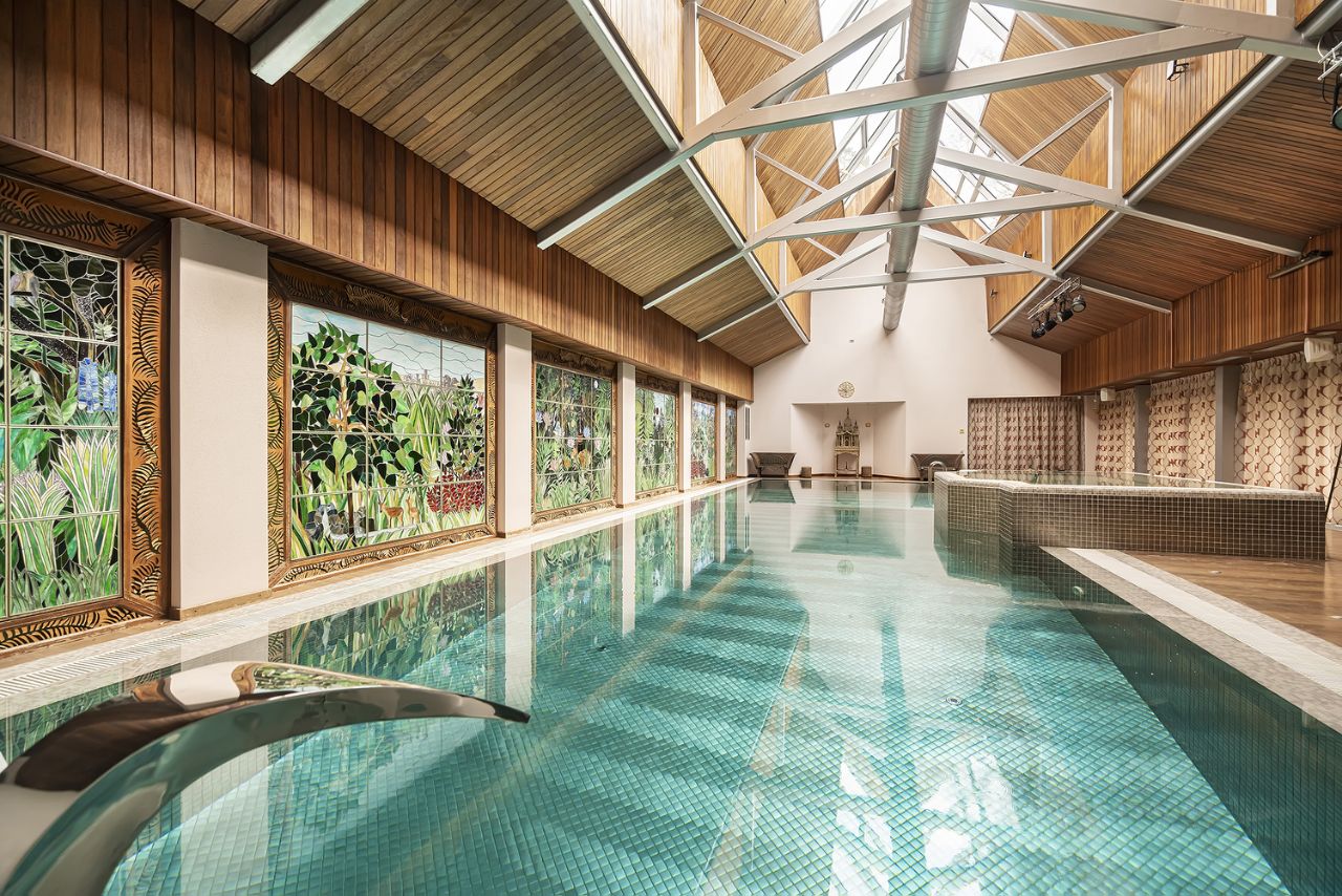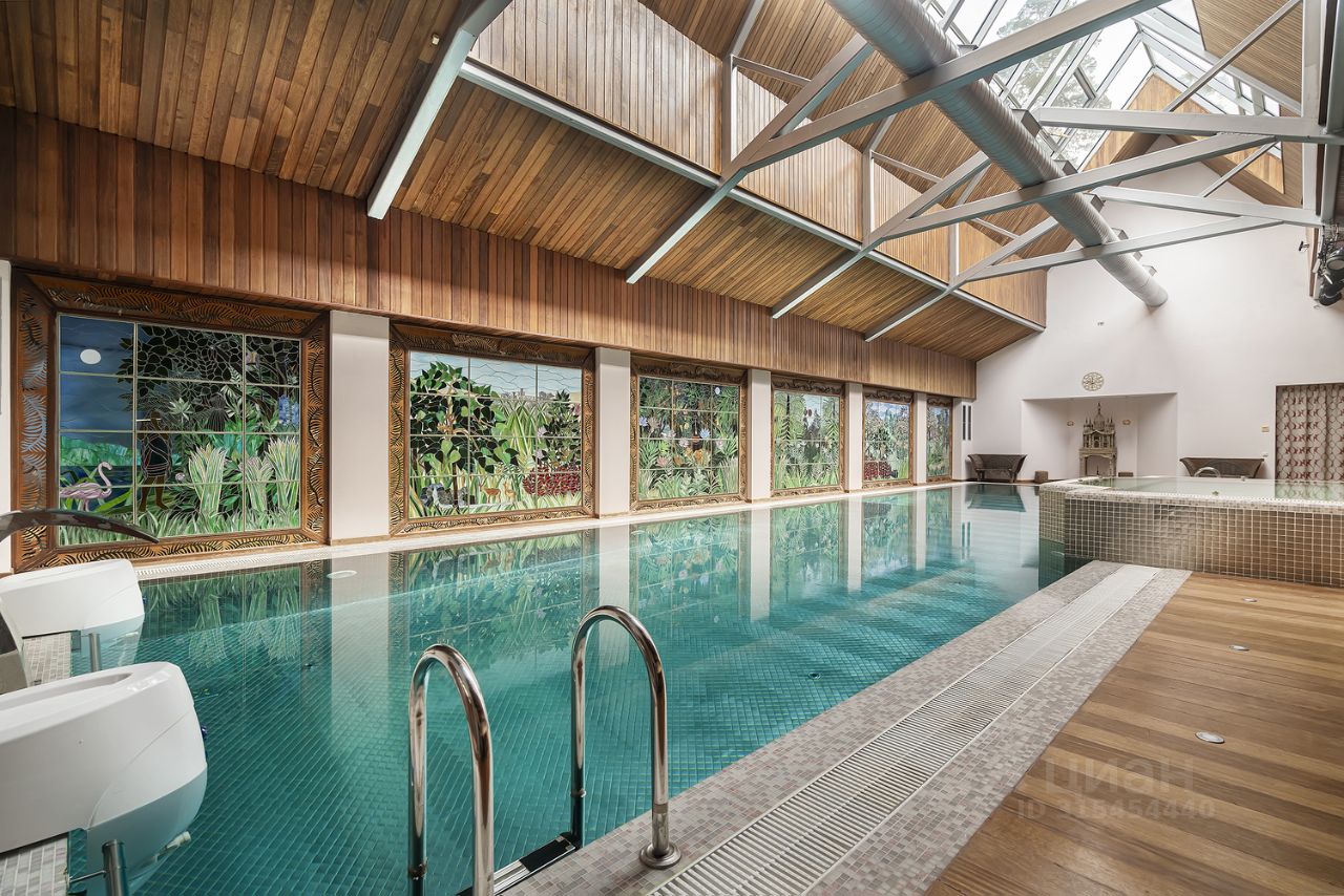 ID 542228. КП Санаторий Барвиха/Сады Майендорф. Коттедж с авторским дизайном интерьера в лучшем поселке на Рублевке. Грамотная планировка: 4 спальни, кабинет, гостиная, столовая, каминный зал, сауна, бильярд, спортивный зал, отдельный вход в блок для персонала (2 комнаты), изолированный от хозяйской части. Бассейн находится в отдельном доме. Участок 30 соток. Отдельно на участке расположены спортивный павильон (бассейн, сауна, санузел) и детская площадка. Планировка дома: Цокольный этаж: 2 комнаты с отдельным входом, гараж на 2 автомобиля, блок для обслуживающего персонала (1-комнатная квартира), 1 этаж: студия: гостиная - столовая - кухня, санузел, 2 этаж: 4 спальни, 2 санузла, кабинет, 3 этаж: сауна, спортзал, бильярд, санузел. Номер объекта: #1/542228/13364