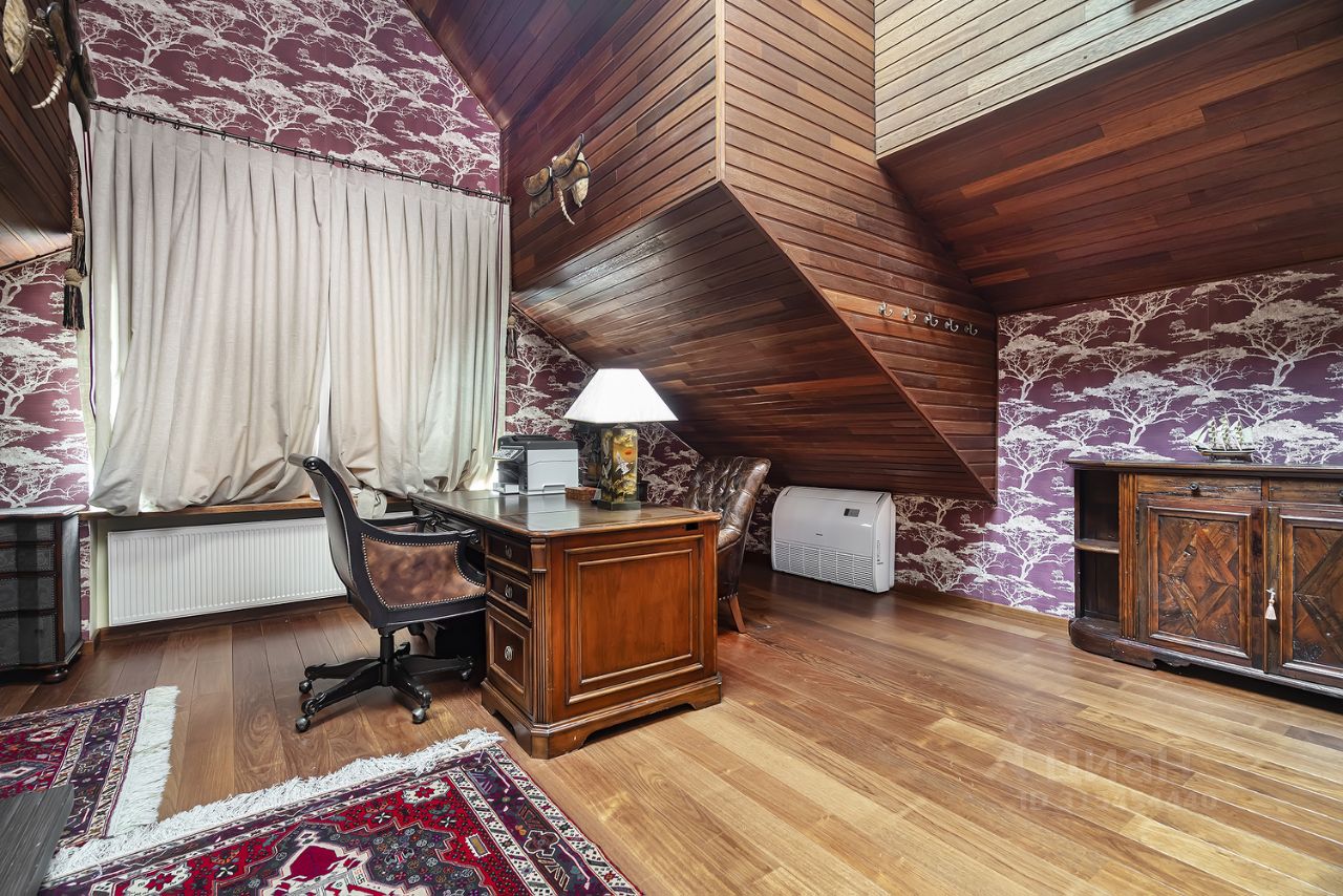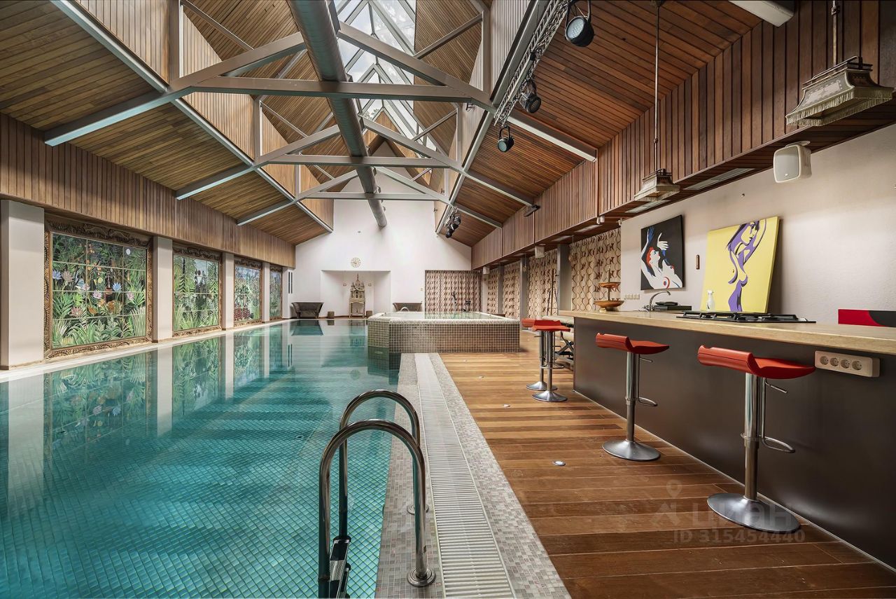 116836 Лес ДСК Жуковка Стильный дом 800 кв.м в поселке ДСК Лес Жуковка. Дом полностью меблирован и готов к проживанию. На лесном участке 45 сот. с корабельными соснами участке выполнены ландшафтные работы, организован пруд с декоративными элементами в восточном стиле, беседка с зоной барбекю, вымощены дорожки, установлено освещение. На участке гараж на 2 авто, есть комната для персонала с отдельным входом. Планировка дома: Цоколь: прачечная, котельная с системой водоподготовки, бильярдная, кинозал, с/у, винный погреб, кладовая, бар, сейфовая комната. 1 этаж: прихожая, с/у, гардеробная, блок охраны, гостиная с камином, кабинет, столовая с выходом на террасу, кухня-столовая кладовой и выходом на террасу. 2 этаж: холл, спальня, ванная комната (гидромассажная ванна и душевая кабина), спортзал, двусветная библиотека, спальня с ванной комнатой (гидромассажная ванна и душевая кабина) и гардеробной, мастер-спальня с выходом на террасу, камином, гардеробной и ванной комнатой (гидромассажная ванна и душевая кабина). Звоните сейчас, чтобы узнать подробную информацию и записаться на показ! Сотрудничаем с агентами.