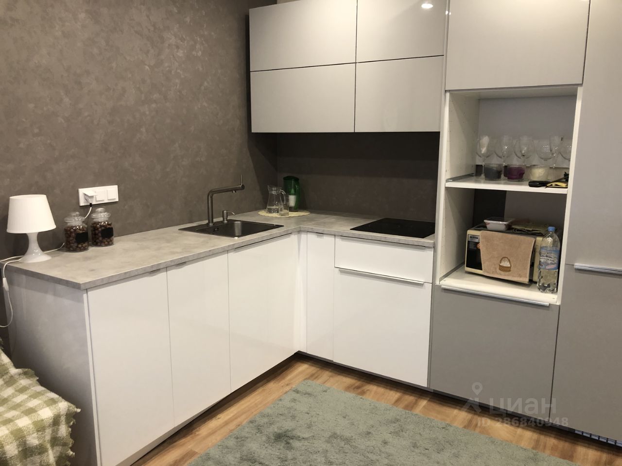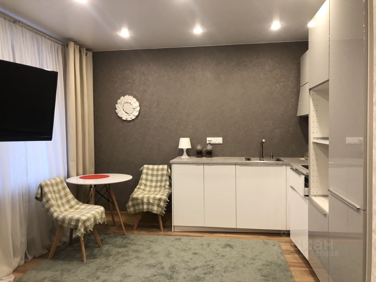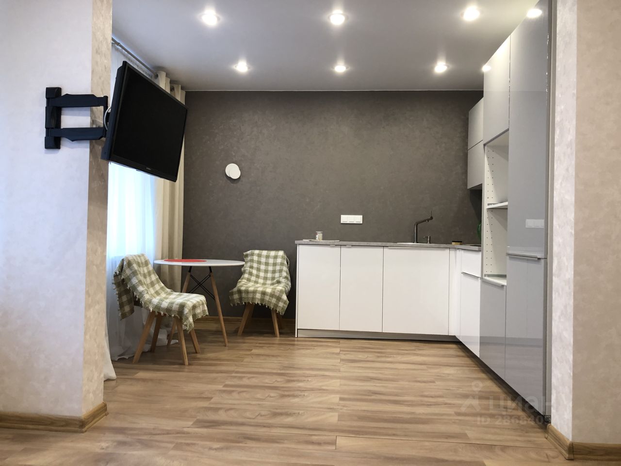 Продам квартиру-студию (по документам однокомнатная). Обои под покраску, большие окна, полы ламинат, с/у совмещенный в плитке, гардеробная комната, кухня Икеа со встроенным холодильником и стиральной машиной. Все в хорошем состоянии.