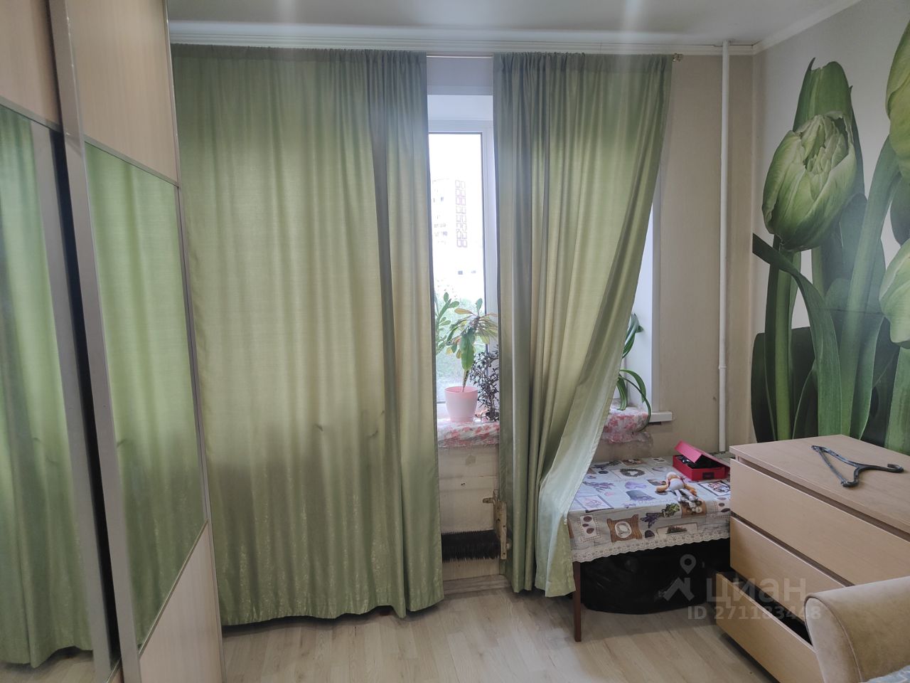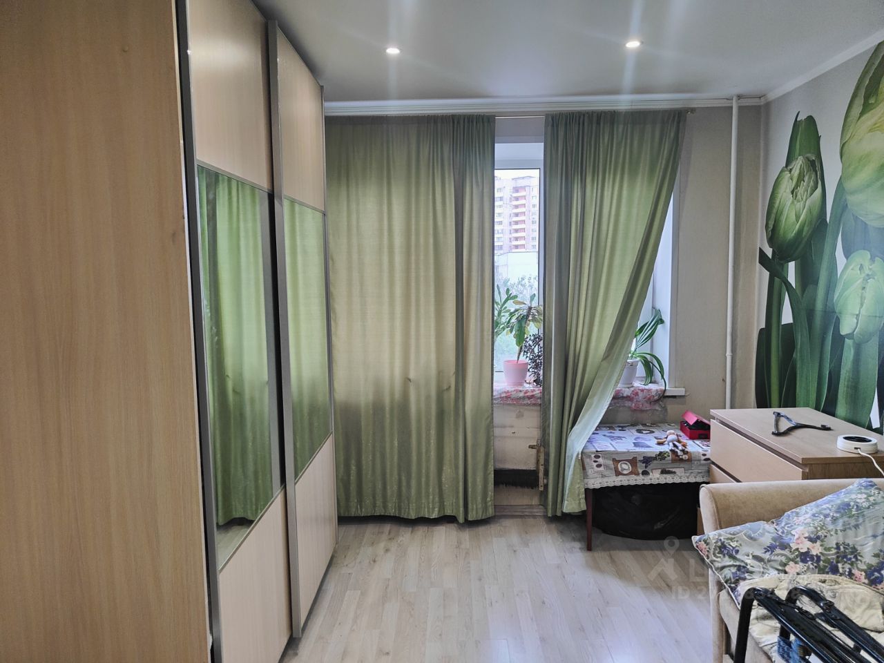 Обратите внимание, комната большая (17.2 кв.м.), но проходная (не изолированная). Дальнюю комнату снимает один мужчина.