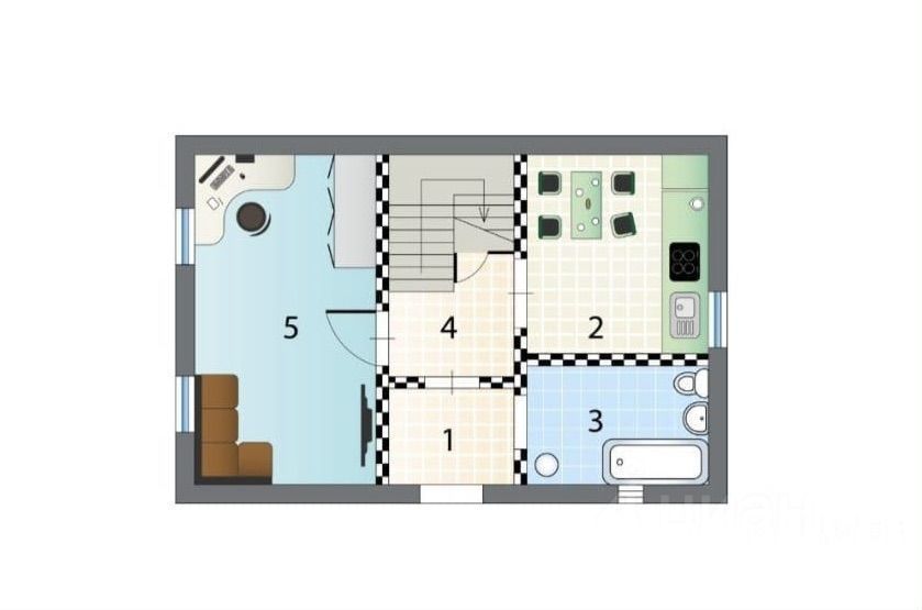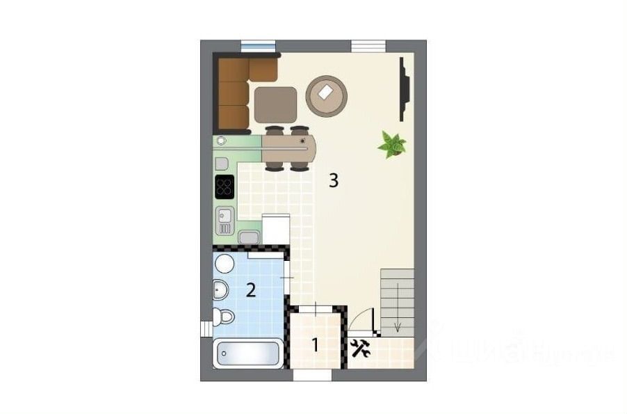 1 этаж: прихожая, санузел, кухня-гостиная.