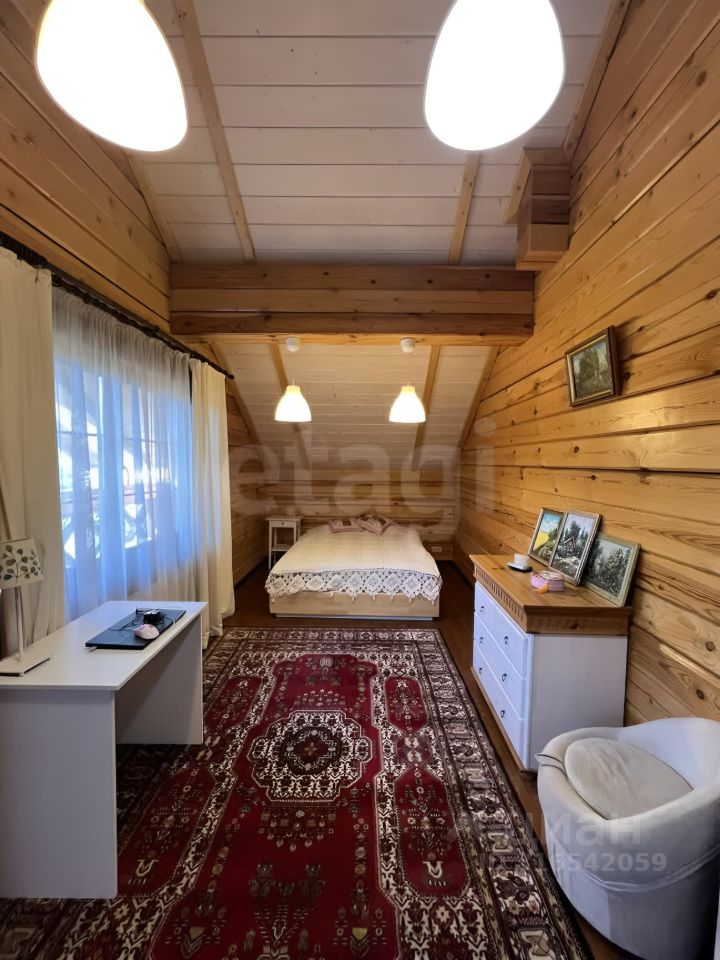 1-й этаж: прихожая, котельная, объединенная кухня-гостиная с камином и с выходом на террасу, отдельная спальня, с/у с душевой кабиной. 2-й этаж: 2 отдельные спальни с выходом на лоджии, гардеробная (кладовая), библиотека с выходом на 1 из 2 лоджий, с/у с ванной. Потолки 3м. на 1-м этаже, на 2-м этаже до 4,5 м. Теплые полы в санузлах, в прихожей и на кухне.