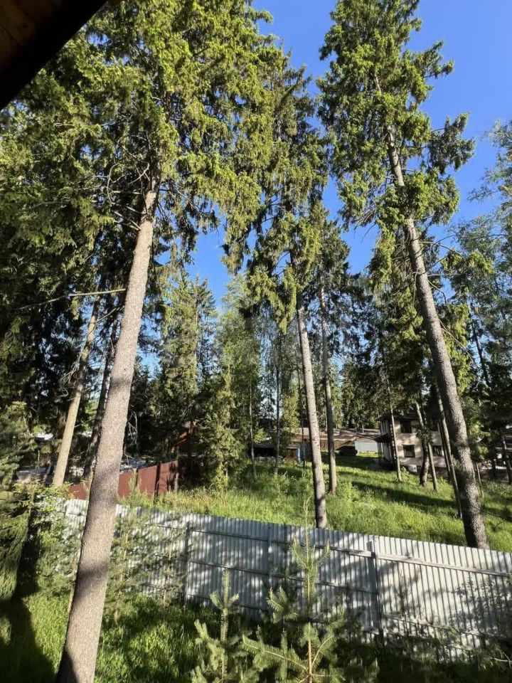 Рядом с участком нет проезжей части - подъездная дорога упирается в детскую площадку. Живописное место, дом расположен в лесной части, сосны и ели.