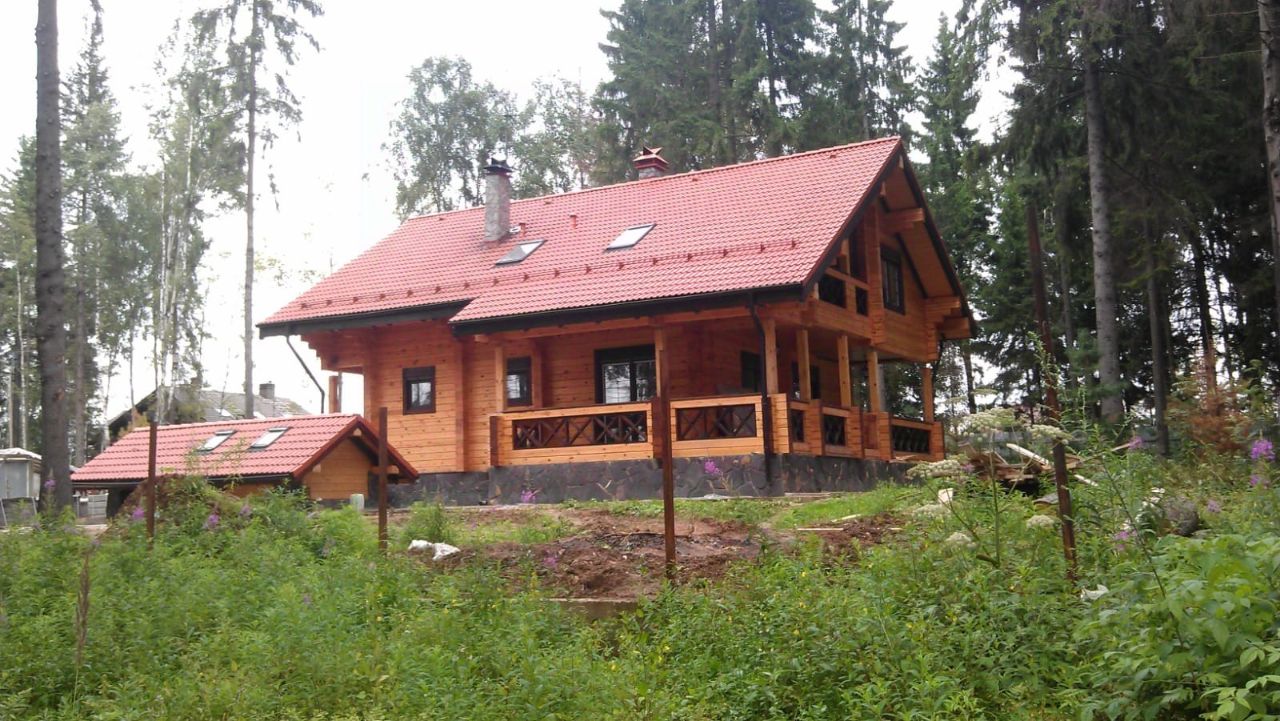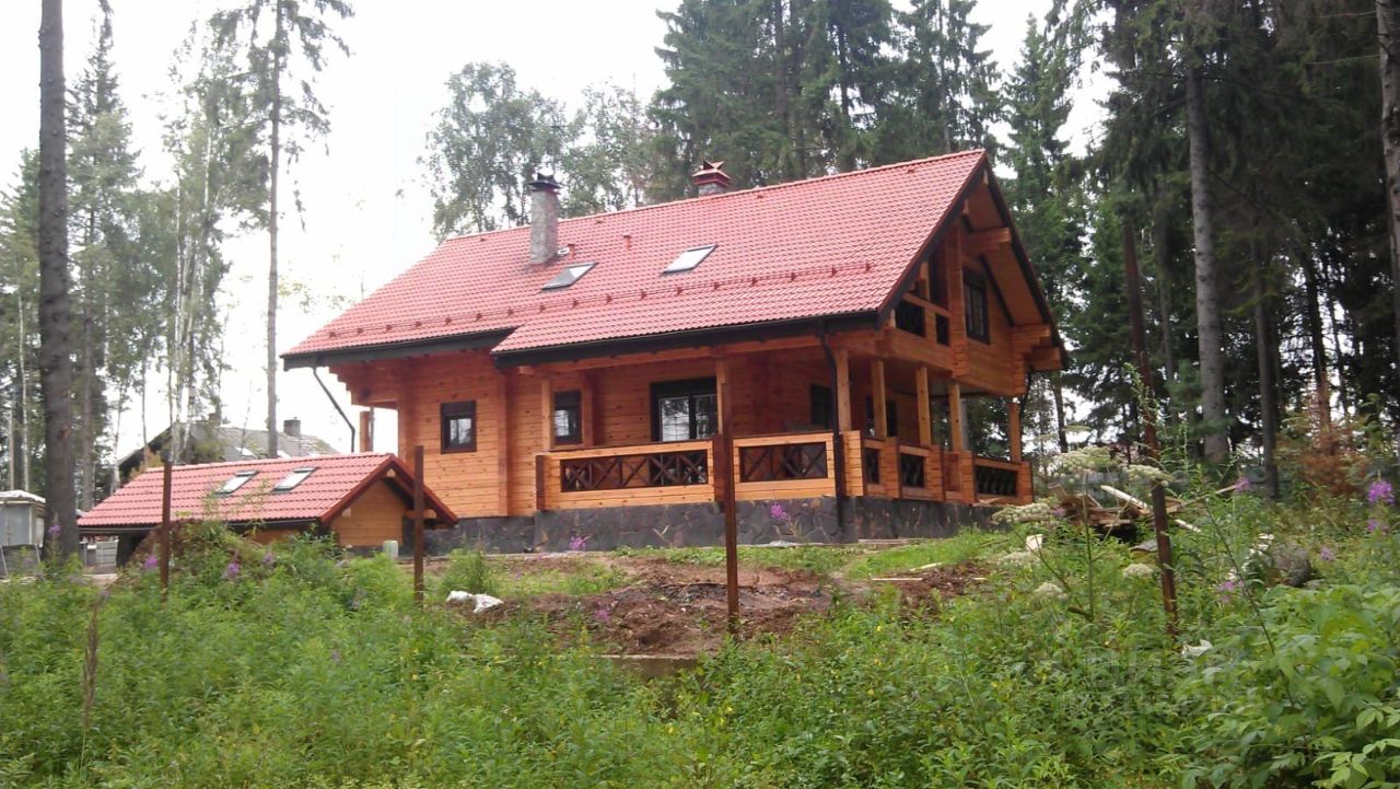 На участке: основной дом, гостевой дом с сауной, въездная группа (2 машиноместа под крышей, 2 помещения для хранения садового инвентаря и пр., дровница), беседка, бытовка (контейнер), тех.строение для подачи, разводки воды).