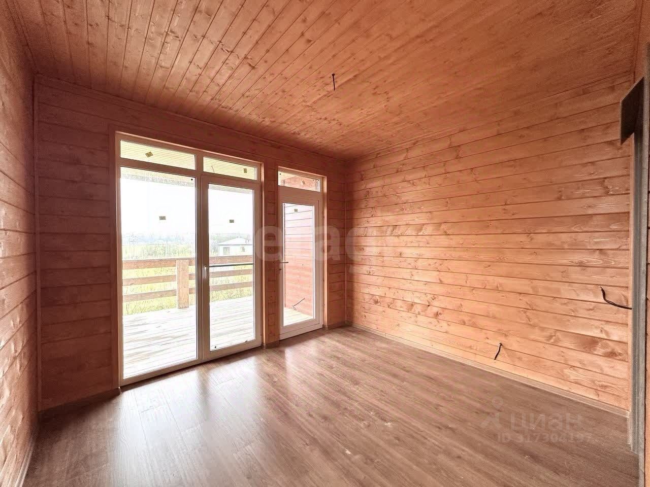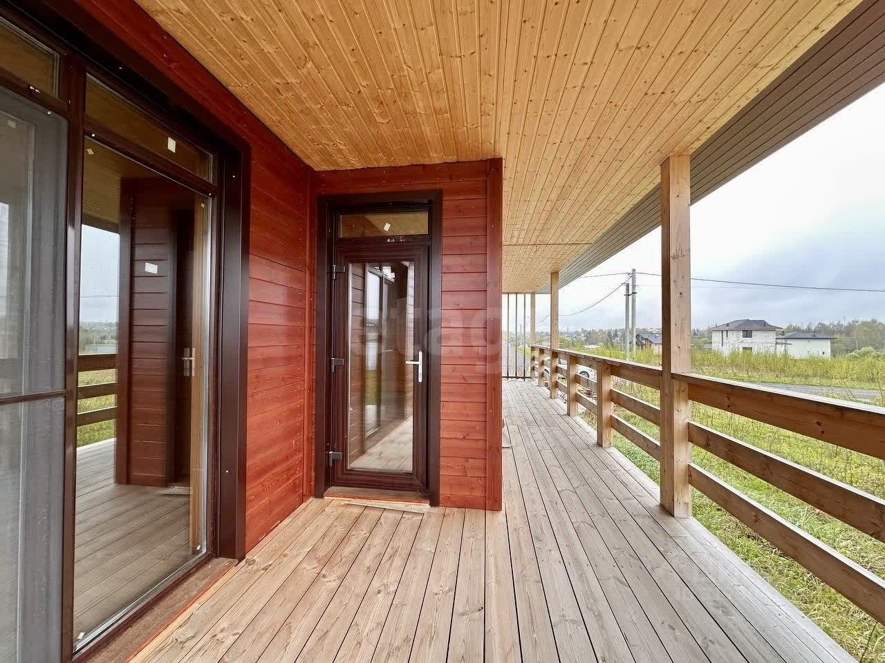 В доме выполнена отделка имитация бруса, подготовлена сауна. Нет отделки только в санузле, чтобы будущий собственник смог сделать его под себя. Просторная терраса 28,5 метров, на которую сделан выход из гостиной и двух спален с панорамными окнами. В доме сделана разводка инженерии, осталось только поставить розетки, выключатели и сделать санузел.
