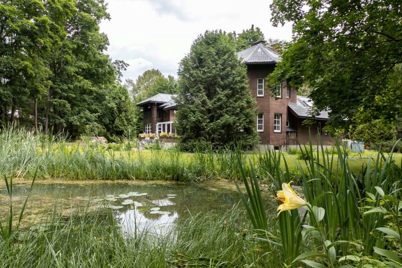 Ухоженная территория с газонами, лесным массивом и прудом. Участок благоустроен, огорожен забором по периметру и граничит с прибрежной полосой. На участке расположены гостевой дом с гостиной и 3 спальнями и с гаражом на 3 а/м, дом охраны, и другие постройки.