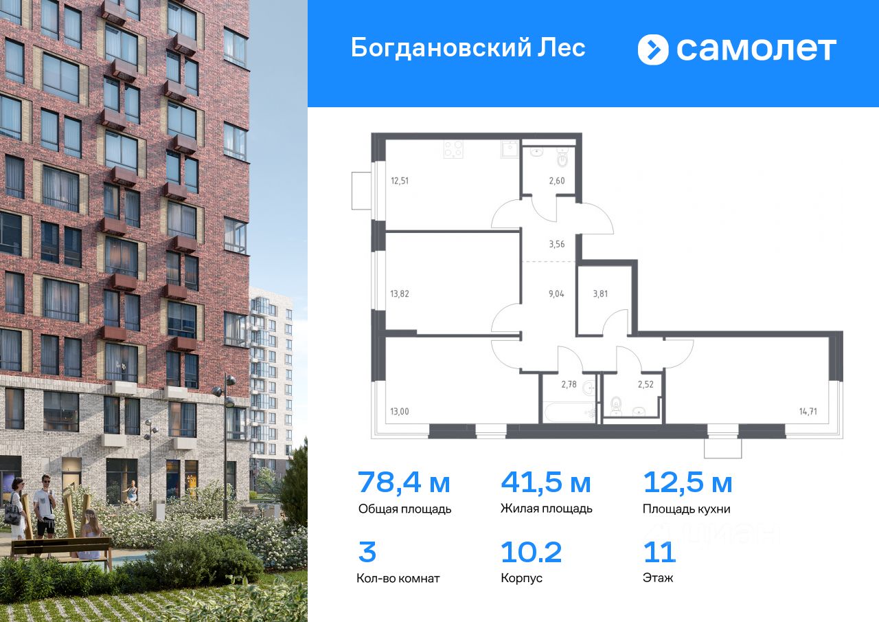 Предлагается 3-комнатная квартира комфорт-класса 78,35 кв.м в корпусе 10.2 на 11 этаже, в ЖК ''Богдановский Лес'' Квартира без отделки. Доступность опции ''отделка'' и возможность комплектации мебелью и декором уточняйте у застройщика.