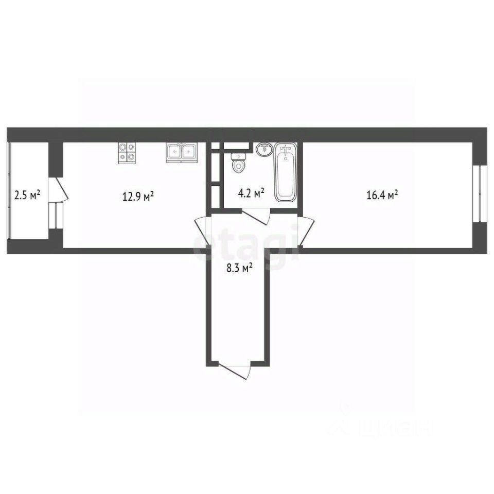 Общая площадь квартиры составляет 44.4 кв. м. Большая кухня площадью 13 кв. м, просторная комната 16 кв. м. с видом на современный ЖК и южную Москву. Застеклённая лоджия добавляет дополнительное пространство для хранения и отдыха.