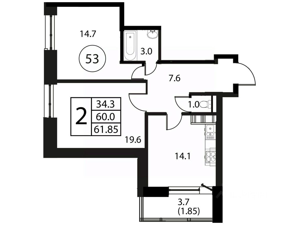 Общая площадь61,85 м2