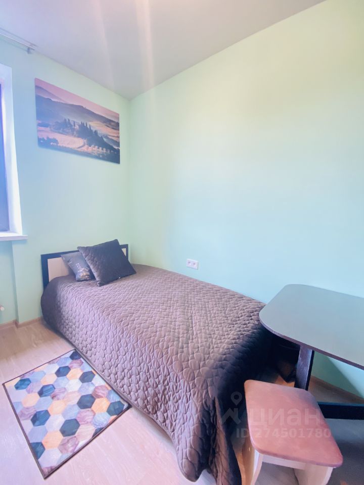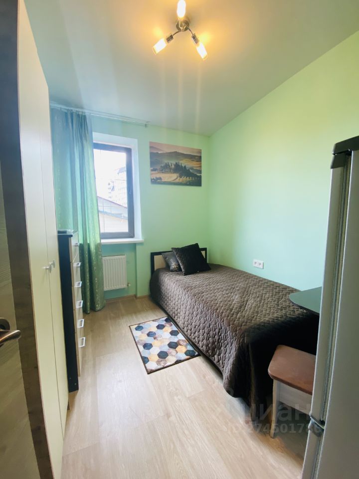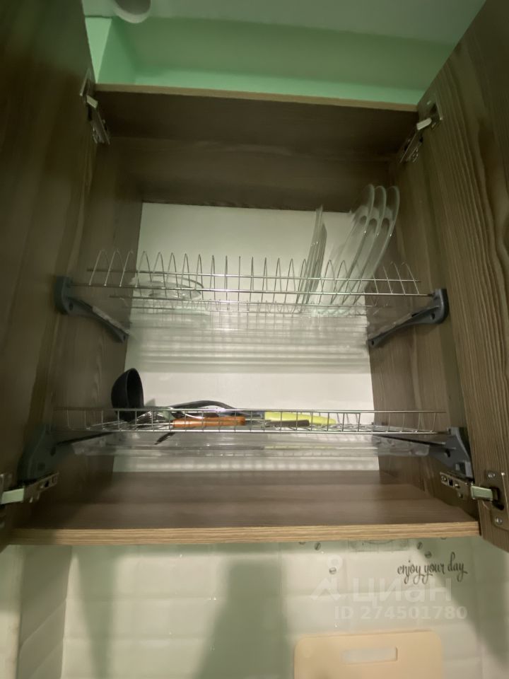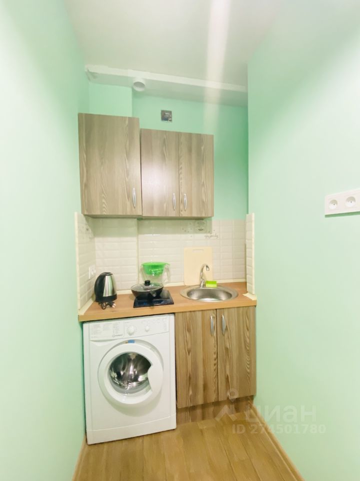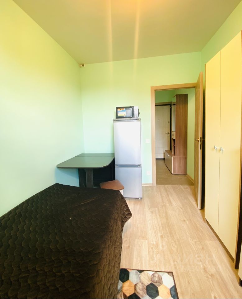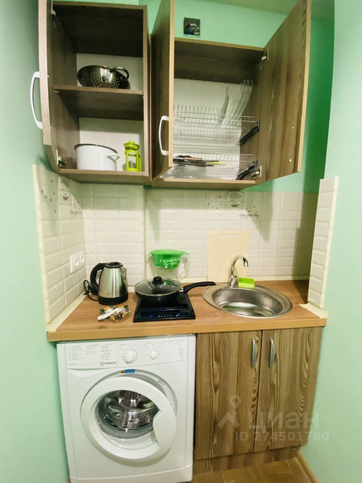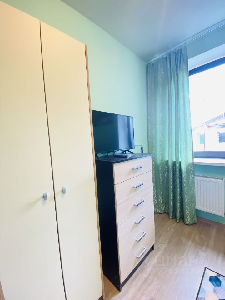 В квартире: одна кровать, шкаф , холодильник, телевизор, стиральная машинка, сушка, полотенца, микроволновая печь, электроплита, посуда, чайник, фильтр для воды, постельное белье.