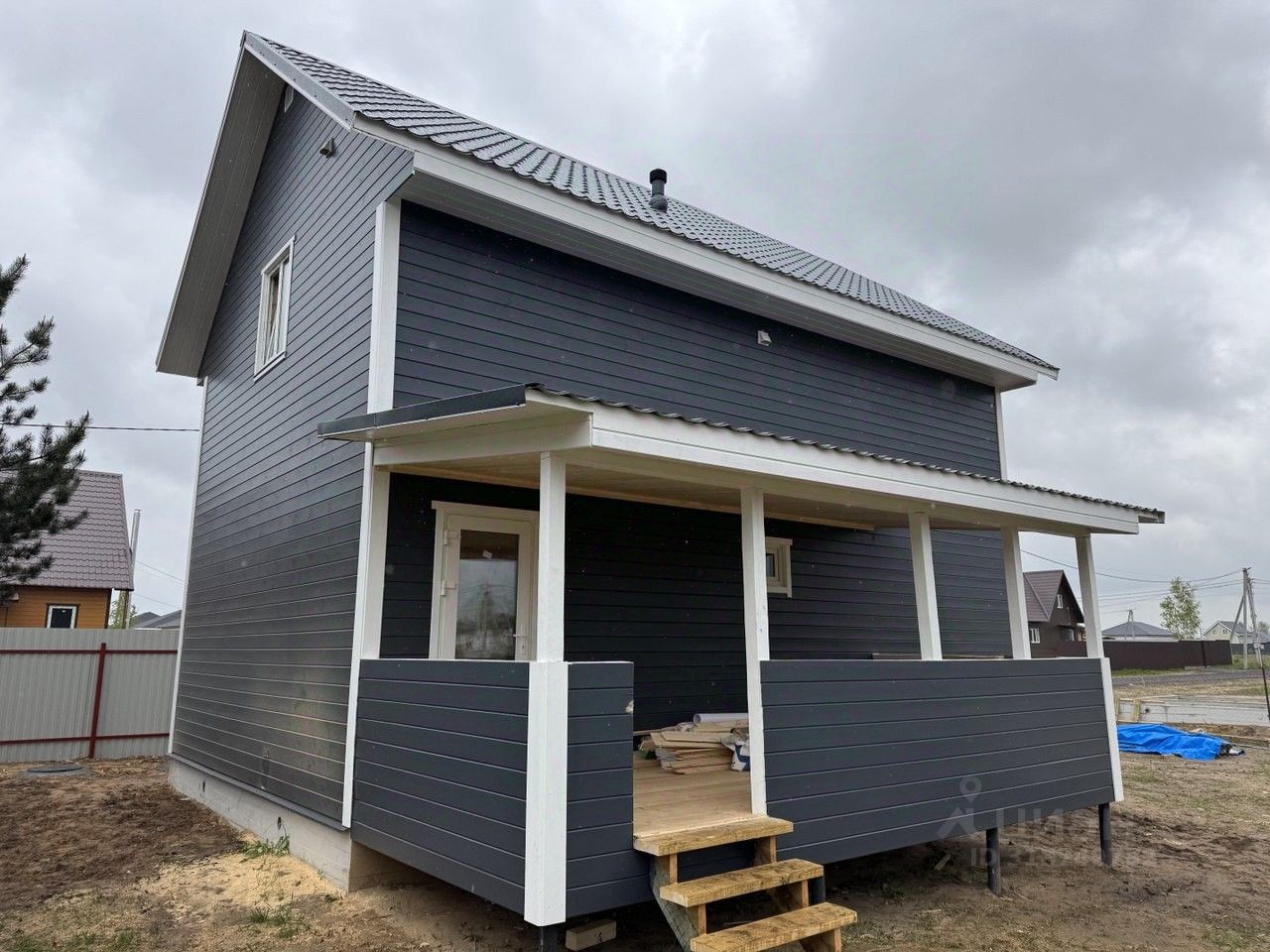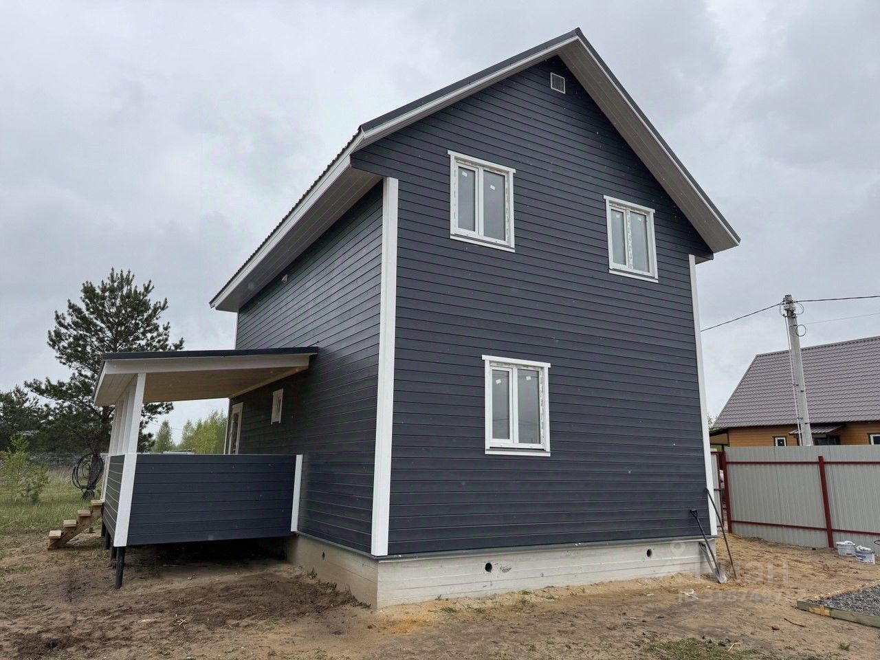 Преимущества дома: Современный, прочный и теплый каркасный дом со всеми коммуникациями для комфортного проживания без дополнительных вложений. Участок огорожен забором, с распашными воротами, калиткой и плиточной дорожкой до дома. Конструктивные особенности: 1-й этаж: котельная-прихожая (7 м²), холл (8 м²), кухня-гостиная (17 м²), комната (12 м²), санузел (4 м²) с душевой/ванной, раковиной и унитазом, выводы под посудомойку и стиральную машину. 2-й этаж: 3 комнаты (17/10/9 м²), холл-гостиная (6 м²), санузел (3 м²) с унитазом и раковиной. Фундамент: ленточный с ростверком. Стены: 1-й этаж и 2-й этаж — каркас (пиломатериалы камерной сушки обработаны антисептиком) с утеплением 150 мм базальтовым волокном. Перекрытия деревянные, пол 1-го этажа и потолок 2-го этажа утеплены 200 мм базальтовым волокном. Кровля: металлочерепица. Окна: пластиковые с двухкамерными стеклопакетами. Коммуникации: Все под ключ, заведены в дом и разведены по местам потребления. Электричество: 15 кВт, 3 фазы. Водоснабжение: скважина с глубинным насосом и греющим кабелем для круглогодичного использования. Отопление: современный гибридный котел Теплодар с возможностью отапливать дом электричеством и твердым топливом (дрова, уголь, брикеты и пр.). Канализация: септик переливной на 2 кольца.