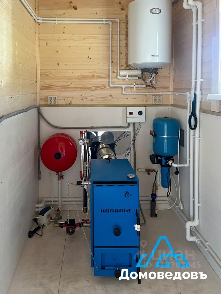 - Вода скважина на участке, водонагреватель, вода проведена в кухню и санузлы. В двух санузлах одна душевая кабина, две раковины, два унитаза, смесители. - Канализация локальное очистное сооружение. - Электричество 15 кВт, свет, розетки и выключатели. - Отопление котел на твердом топливе и электричестве, радиаторы, антифриз в системе отопления.