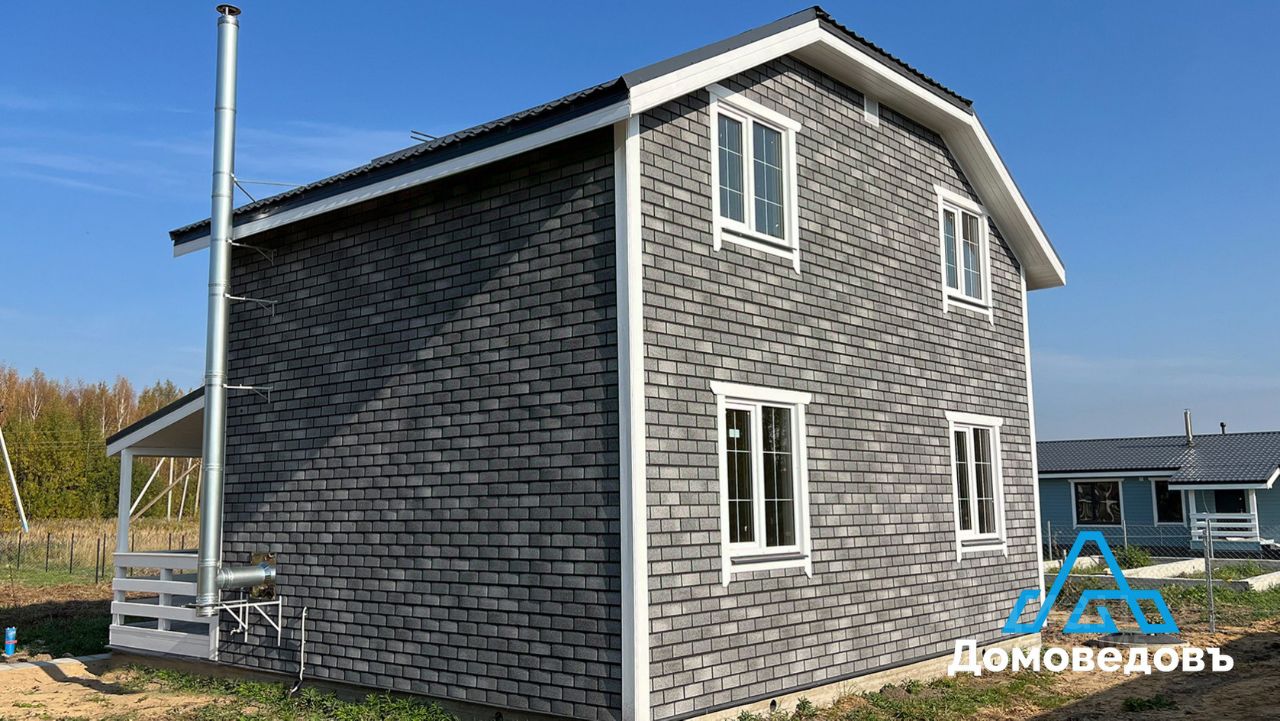 - Фундамент свайный. - Крыша металлочерепица. - Стены внутри евровагонка, снаружи имитация бруса/фасадная плитка. - Металлическая входная дверь, деревянные межкомнатные двери, пластиковые окна, лестница на второй этаж.
