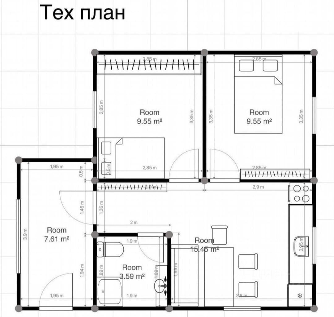 Планировка: 2 спальни, кухня, с/у, прихожая. Дом полностью мебелирован, и укомплектован бытовой техникой (холодильник, стиральная машина, микроволновка, плита), можно заехать и жить.