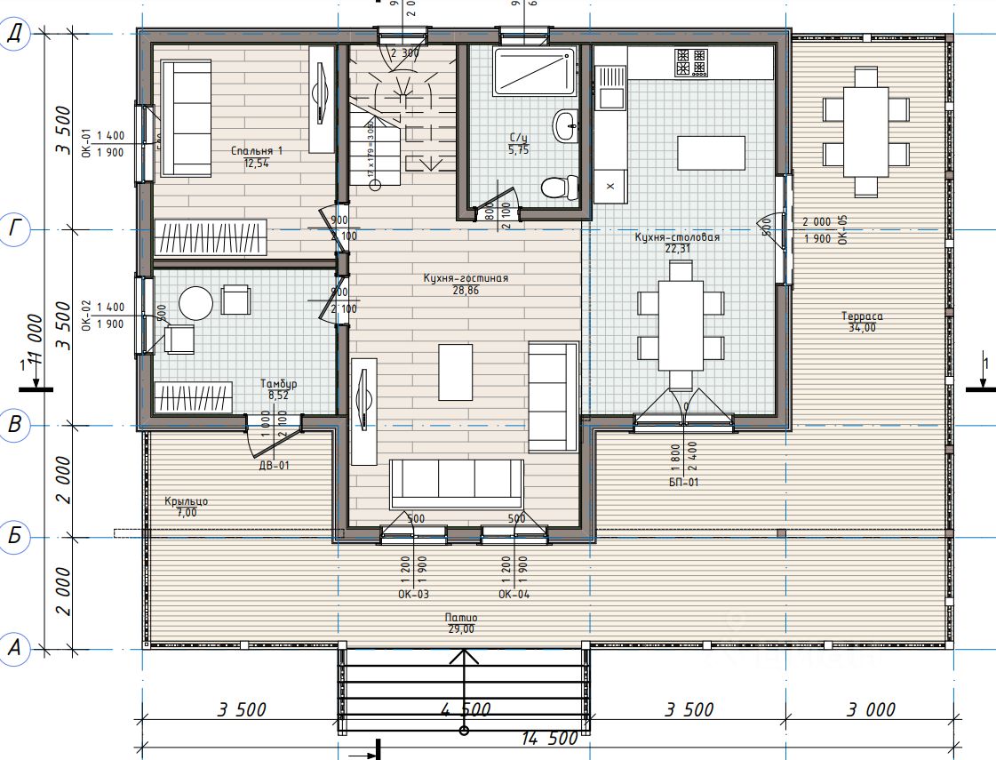 О доме: В данном проекте идеально все: продуманная планировка, высокие потолки, большое количество освещения в доме и стильный фасад. Кухня-гостиная, два санузла, 4 полноценные спальни, гардеробная, большая терраса, зона патио.