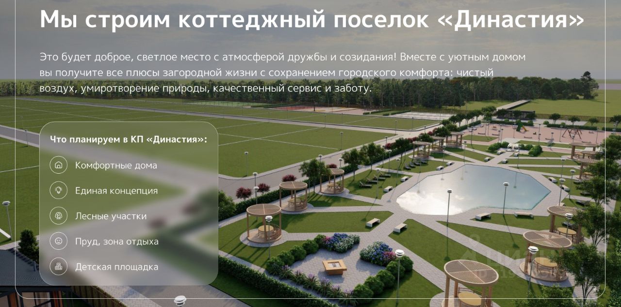 КП ''Династия'' - коттеджный поселок комфорт-класса на северо-западе, близ д. Храброво. Проезд по Дмитровскому, Ленинградскому, Рогачевскому шоссе. Что есть в нашем поселке? - Безопасность: поселок огорожен забором, въезд через автоматические ворота, видео-наблюдение. - Организованы подъездные пути: широкие дороги - Свой водоем на территории поселка (пруд) - На территории поселка 69 участков, размежеваны, получены документы.