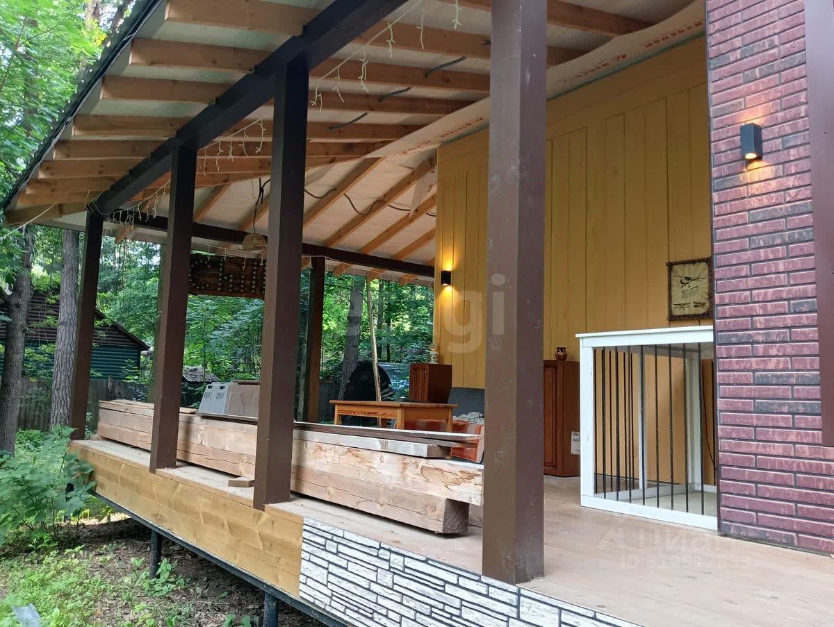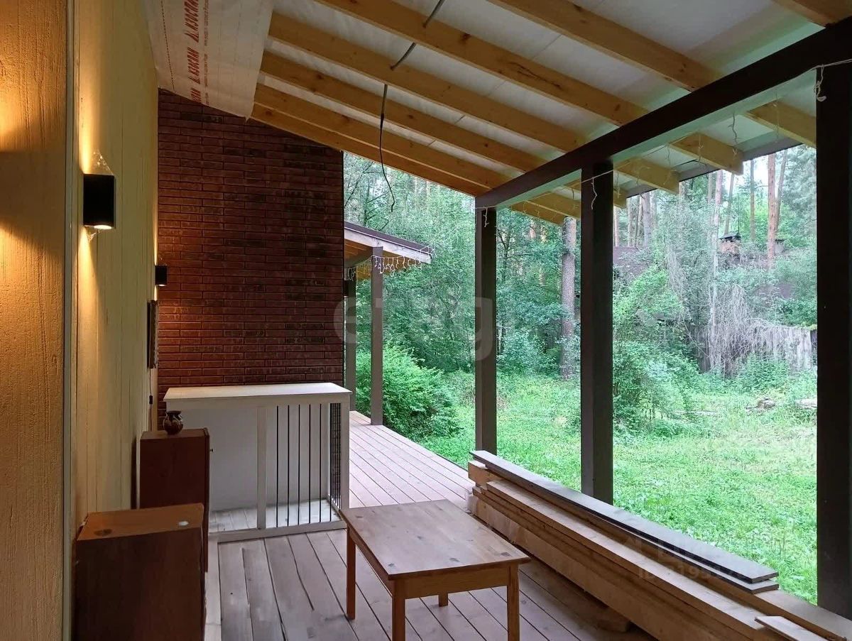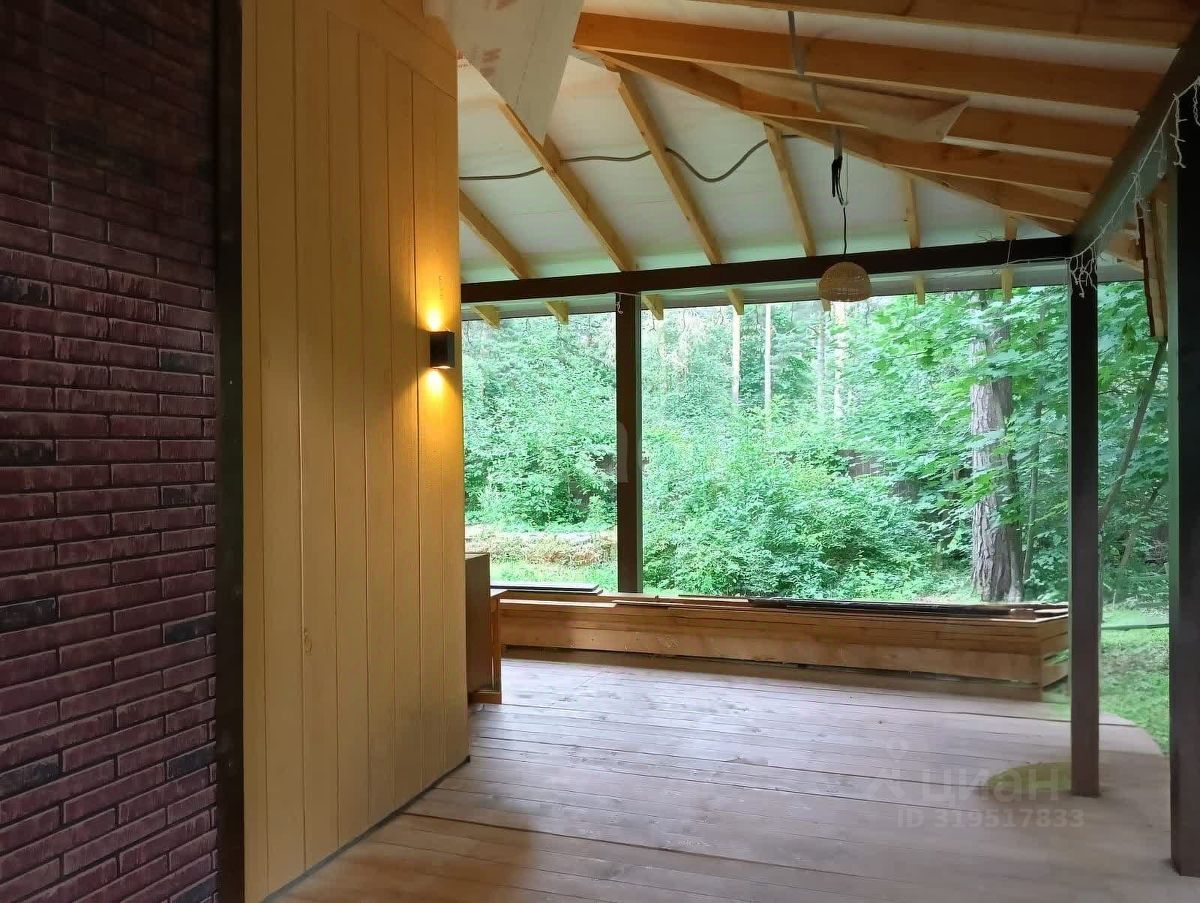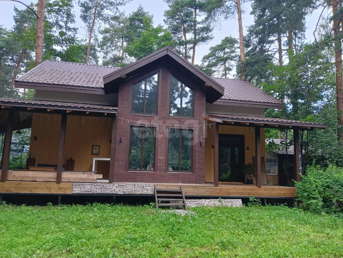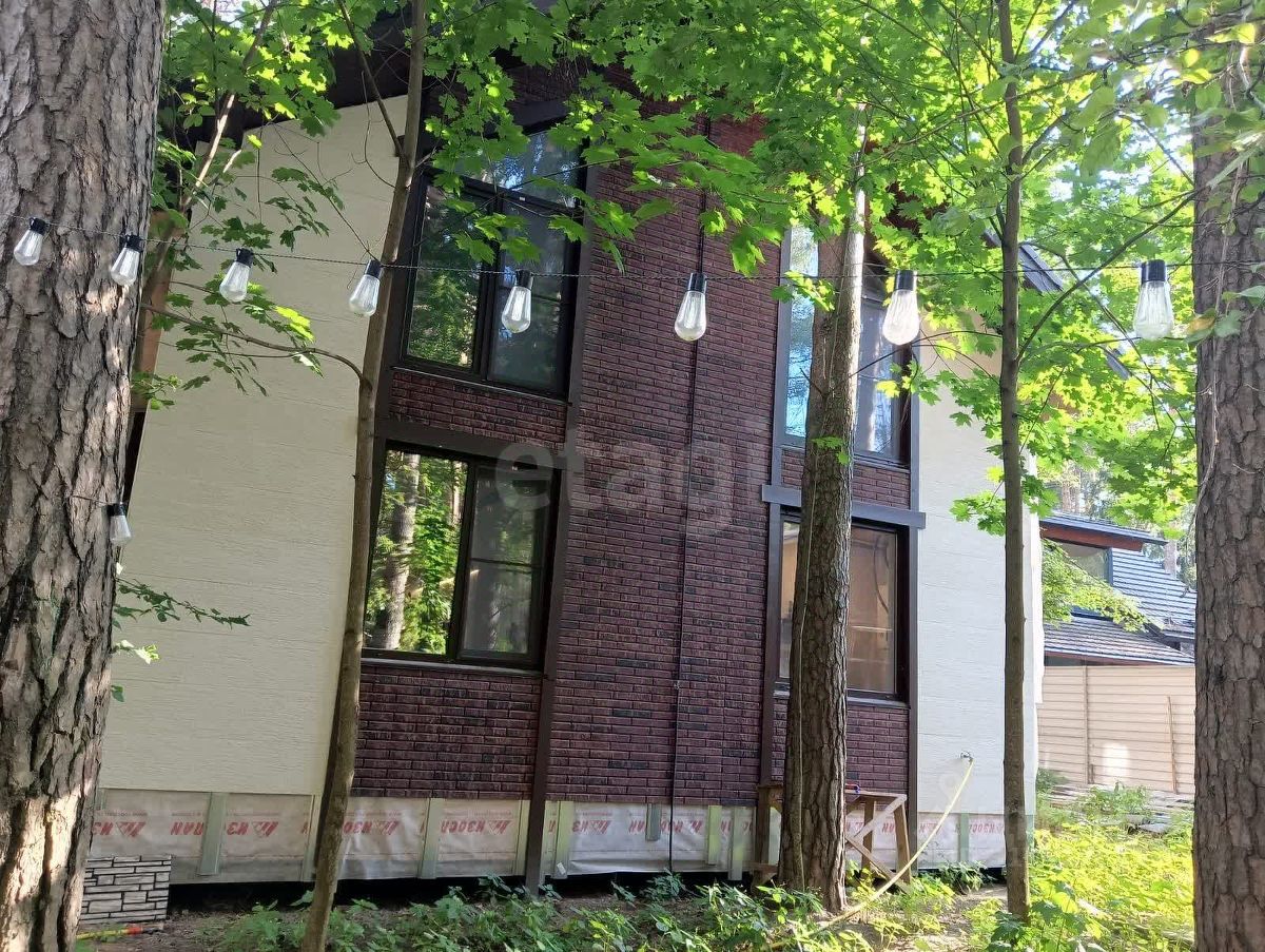 Экстерьер обшит фиброцементными панелями, осталось завершить отделку цоколя (материал в наличии). Кровля выполнена из качественной металлочерепицы толщиной 0,6 мм. К участку примыкает терраса 50 м². Территория сухая, с плотным песчаным грунтом, 20 соснами, летним домиком, сараем, баней и навесом под автомобиль.