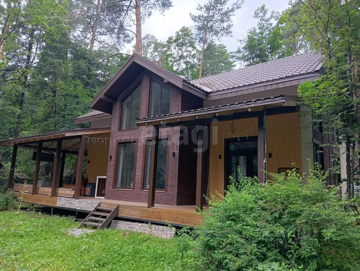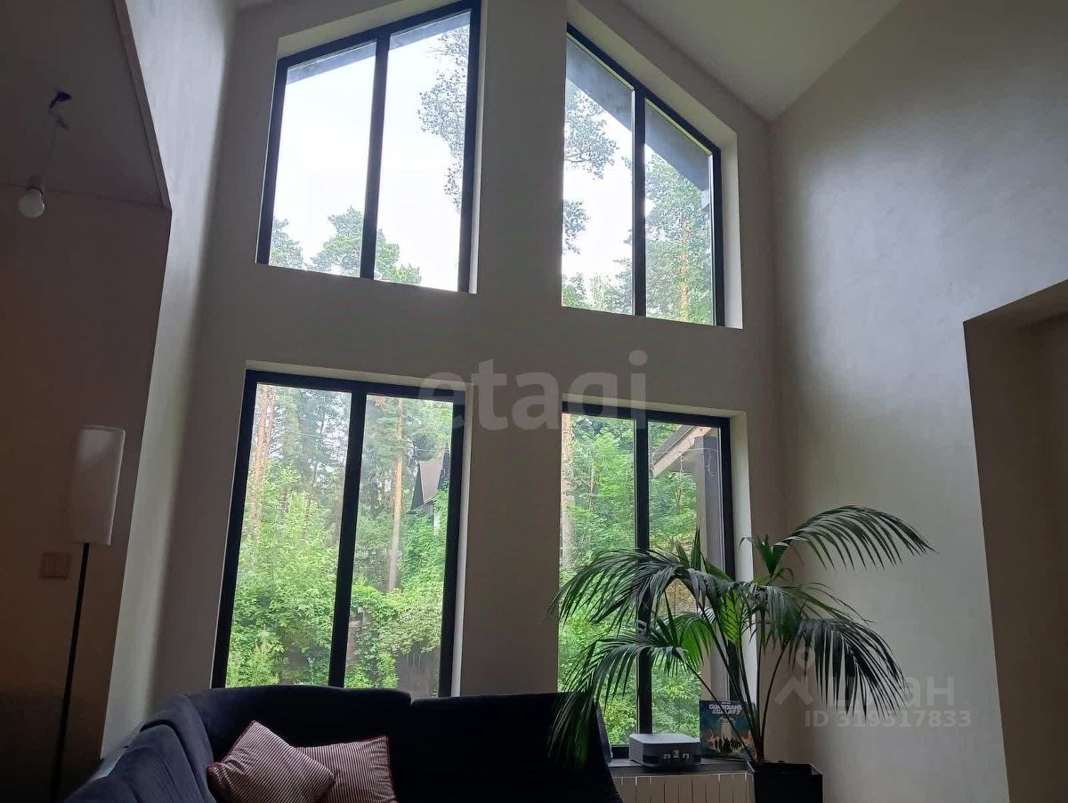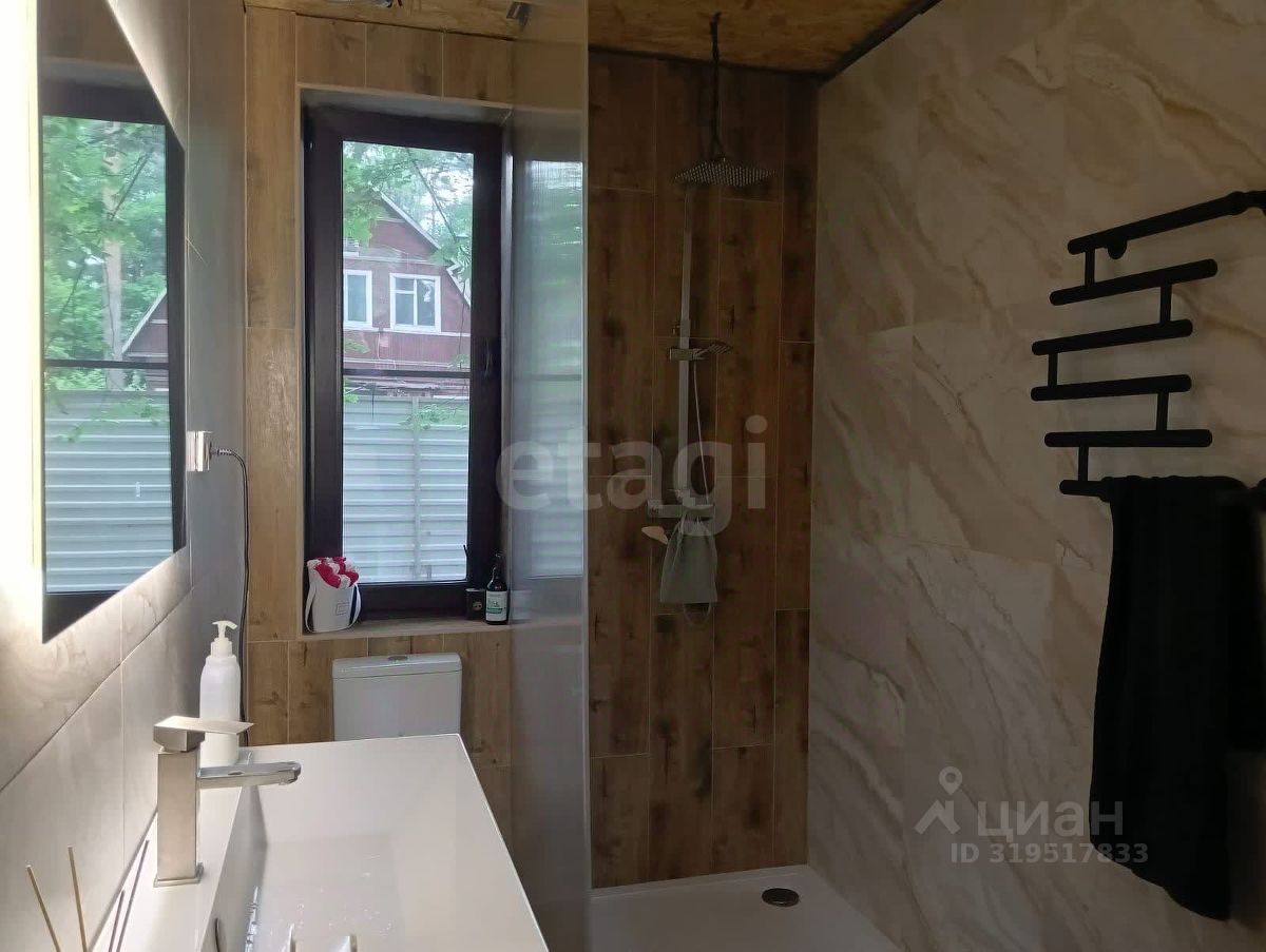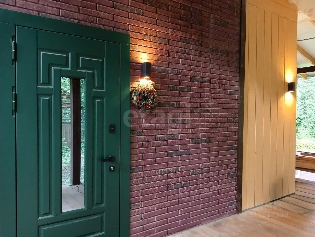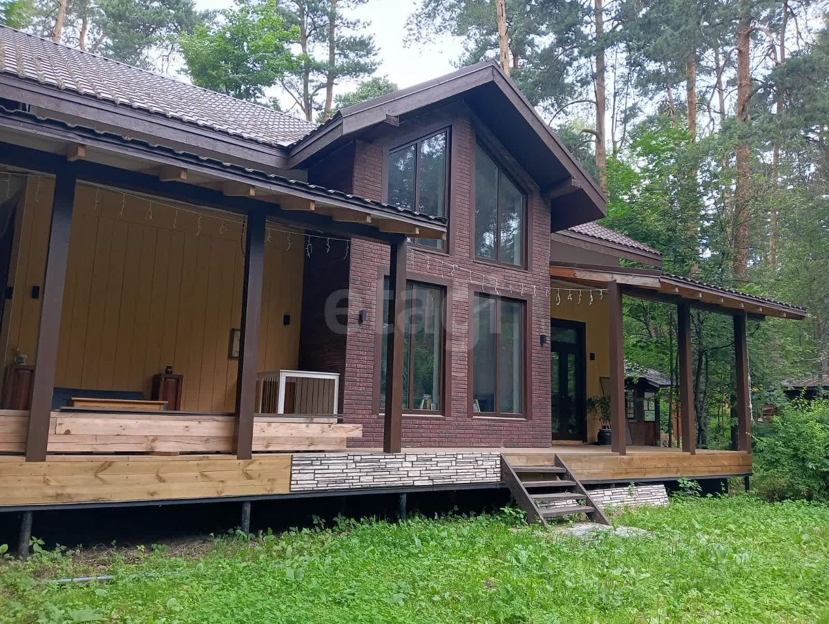 Экстерьер обшит фиброцементными панелями, осталось завершить отделку цоколя (материал в наличии). Кровля выполнена из качественной металлочерепицы толщиной 0,6 мм. К участку примыкает терраса 50 м². Территория сухая, с плотным песчаным грунтом, 20 соснами, летним домиком, сараем, баней и навесом под автомобиль.