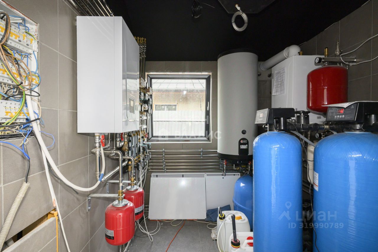 ДОМ: В доме выполнены все предчистовые работы, сделана разводка электрики, собрана котельная из качественных материалов (нержавейка). В доме и бане установлена приточно вытяжная система рекуперации воздуха, а также кондиционер, разработана и смонтирована уникальная воздушная лестница на монокосоуре, которая не съедает пространство и смотрится очень легкой. Стены обшиты гипсокартоном и выполнены малярные работы с последующим грунтованием, осталось только поклеить обои или покрасить стены и отделать потолок, полы в доме также отделаны качественным керамогранитом. В доме 3 спальни (2 детские и мастер спальня с гардеробной), 2 санузла. Дом на шведской утепленной плите вместе с террасой. Выполнено благоустройство территории, установлен дренаж вокруг дома и вокруг банного комплекса, выложена брусчатка. Периметр дома отсечен от улицы бордюрами, что не позволит домашним питомцам покидать территорию. Сам проект является уникальным, так как на небольшой территории удалось грамотно разместить 2 строения с уютным внутренним двориком. Водоснабжение осуществляется из скважины, а отопление обеспечивается собственной котельной. Дом подключён ко всем необходимым коммуникациям: электричеству, газу, воде и канализации.