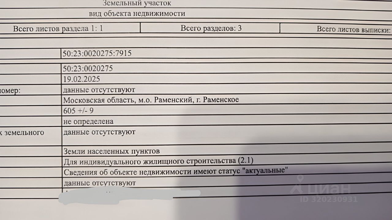 продам участок в г.Раменское 6 соток Ижс. кад номер 50:23:0020275:7915