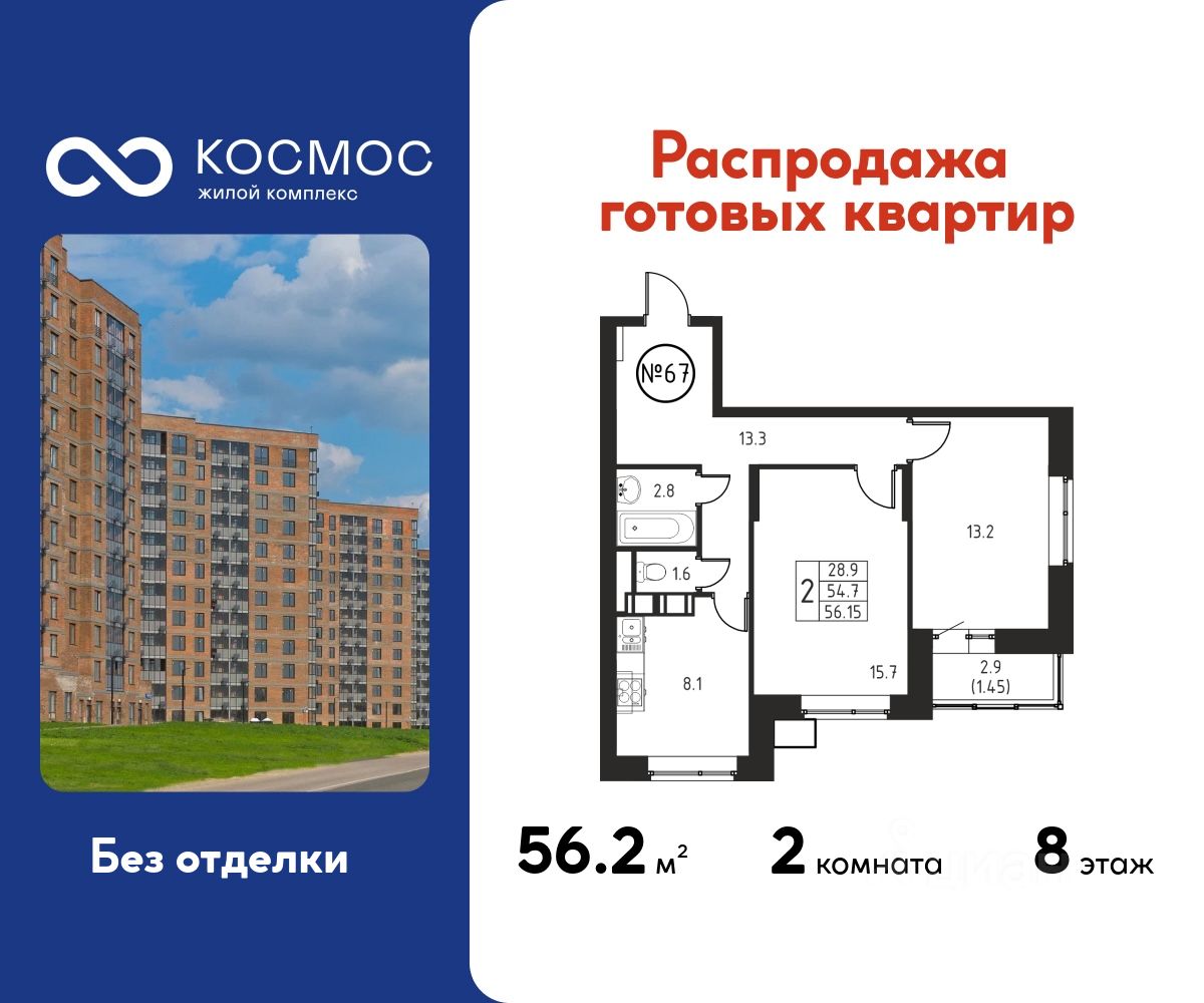 Общая площадь56,15 м2
