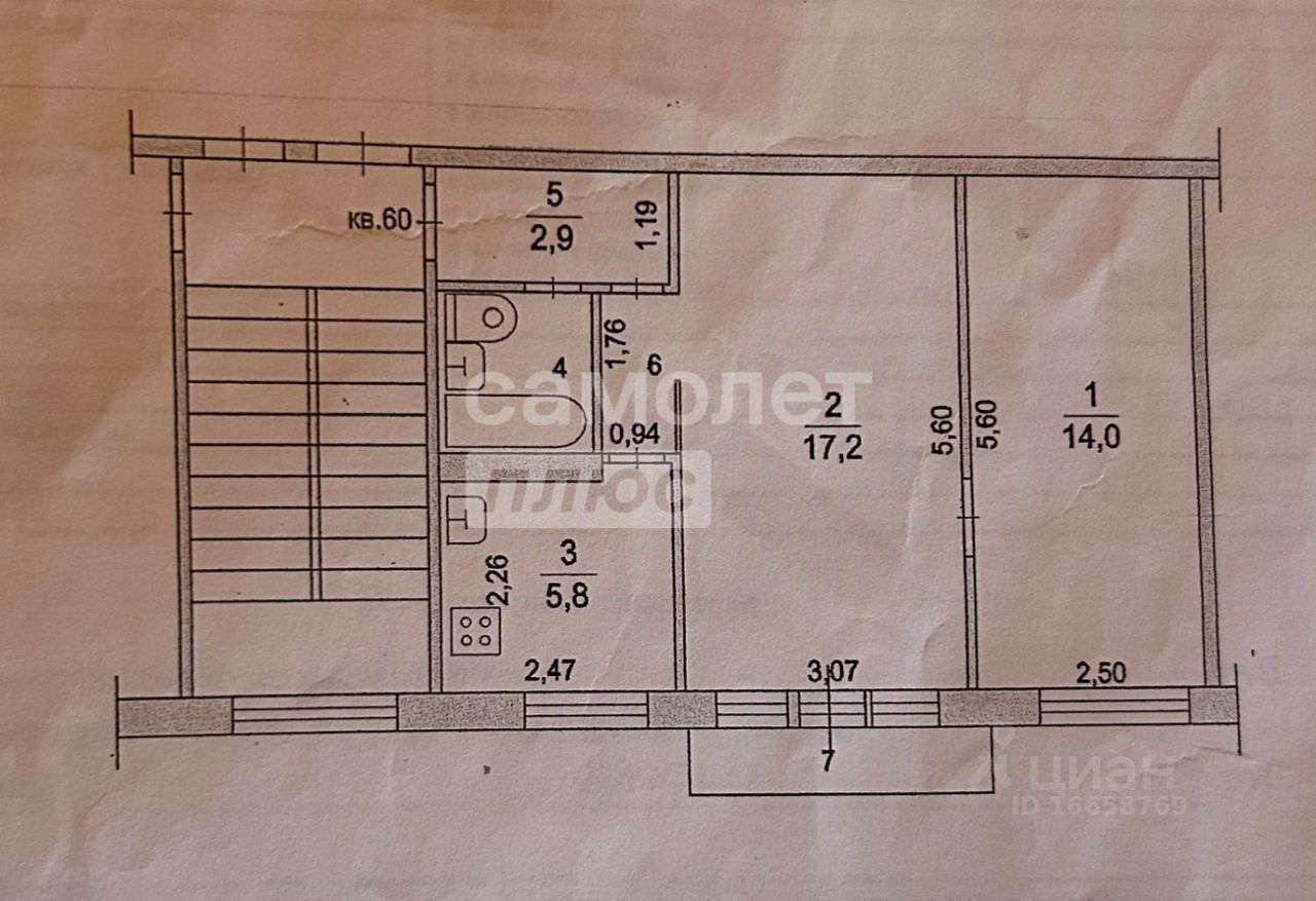 Квартира 2-х комнатная общей площадью 45 кв.м., две смежные комнаты 17,2 кв.м. и 14 кв.м. соответственно, в большой комнате есть балкон, кухня 5,8 кв.м., просторный коридор, совмещенный сан. узел. Дом после кап. ремонта, чистый подъезд, хорошие дружные соседи.