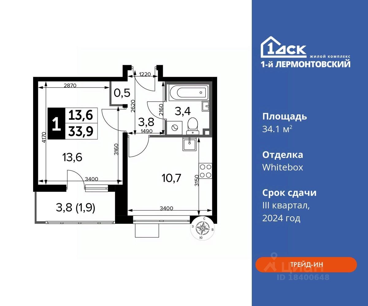 Максимальные скидки при 100% оплате. Корпус сдан! Прямая продажа от застройщика! Жилой Комплекс класса Комфорт плюс. Продаётся 1-к квартира номер 367 в сданном корпусе общей площадью 34.1 кв.м на 7-м этаже 24 этажного дома.