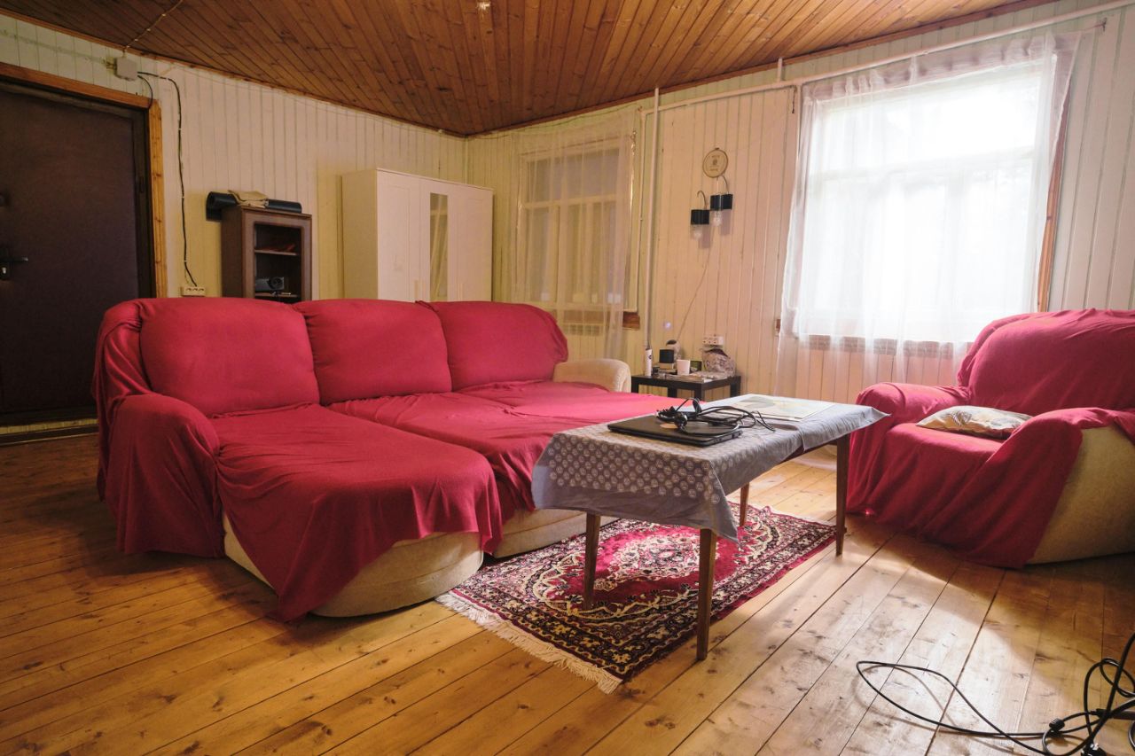 В доме центральное газовое отопление, канализация-септик, насосная станция для подачи воды с проточным фильтром. На первом этаже веранда, кухня, большая комната и душ с туалетом. На втором две жилые, изолированные комнаты. Комнаты полностью мебелированы. Из техники: холодильник, стиральная машина, газовая плита, газовый котел,электрический бойлер, микроволновка. Мебель: две двуспальные кровати, 3 раскаладывающихся дивана, шкафы для хранения. Участок огорожен забором, есть два машиноместо. Вся необходимая инфраструктура в шаговой доступности. До торгового центра Пушкино парк 10мин на авто. В 10 минутах езды река и водохранилище. ----- Примечание: у собственника могут быть дополнительные пожелания к жильцам - обсудите их в чате или по телефону