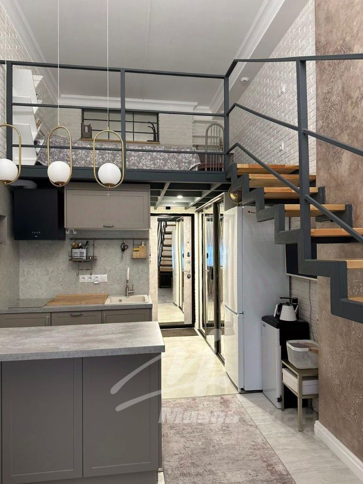 Апартаменты двухуровневые, 18м по полу и 9м второй этаж, потолки 4 метра, большое панорамное окно с тонировкой, вид в тихий двор!
