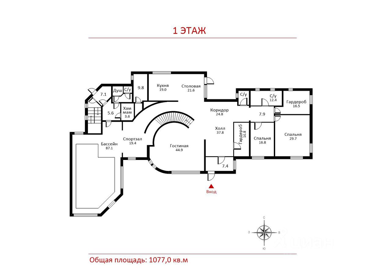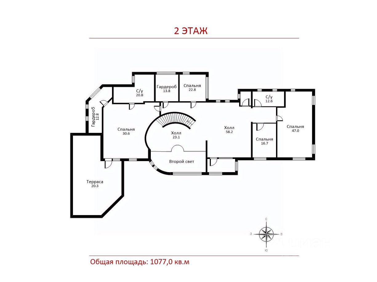 Общая площадь1077 м2