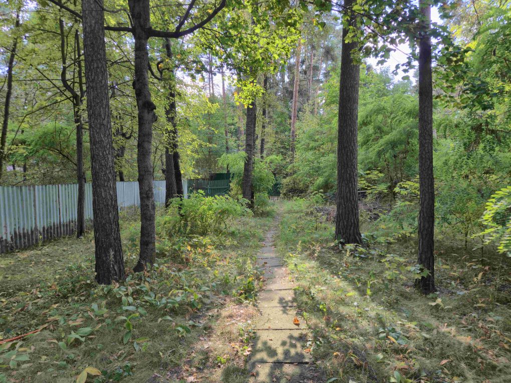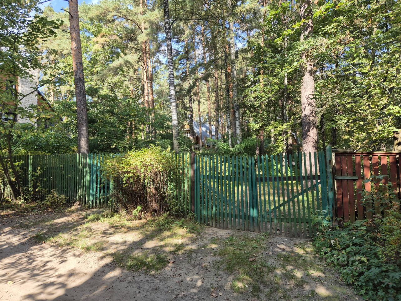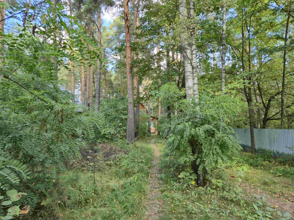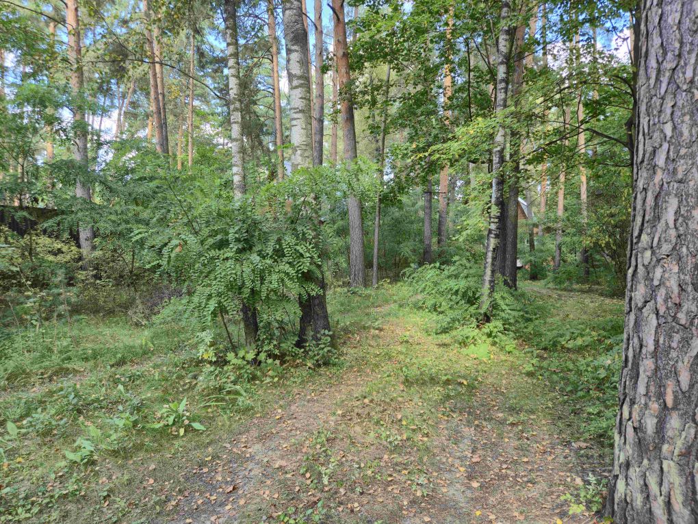 На участке растёт много хвойных деревьев, участок сухой.