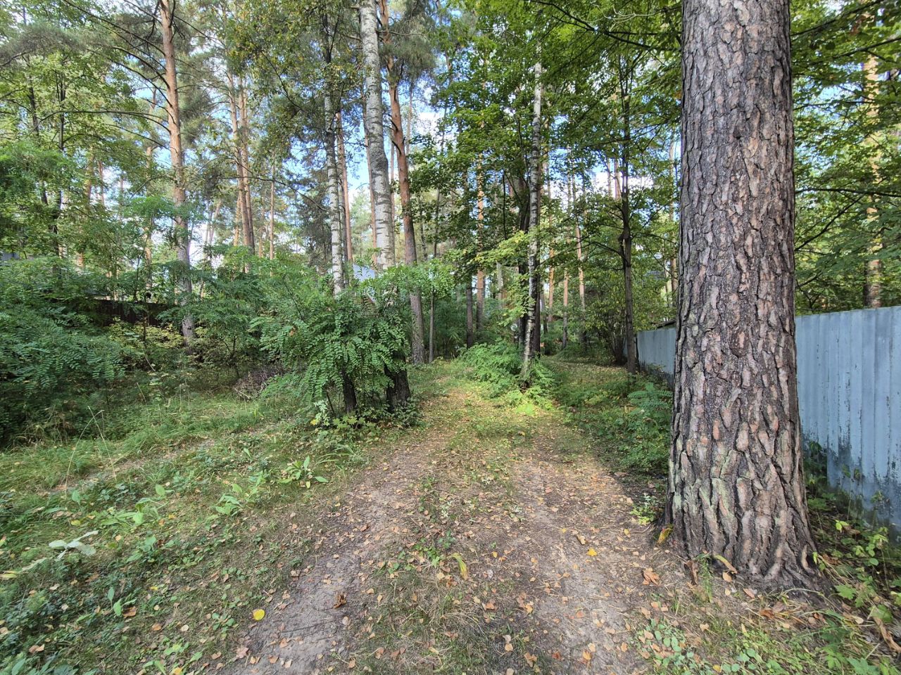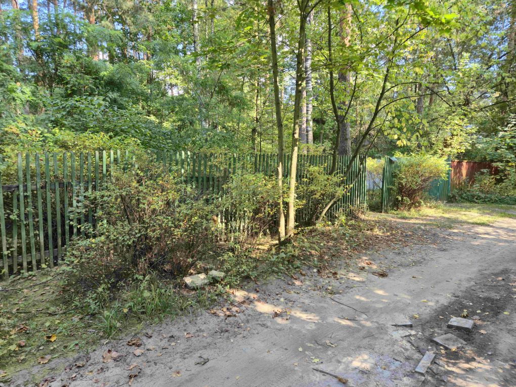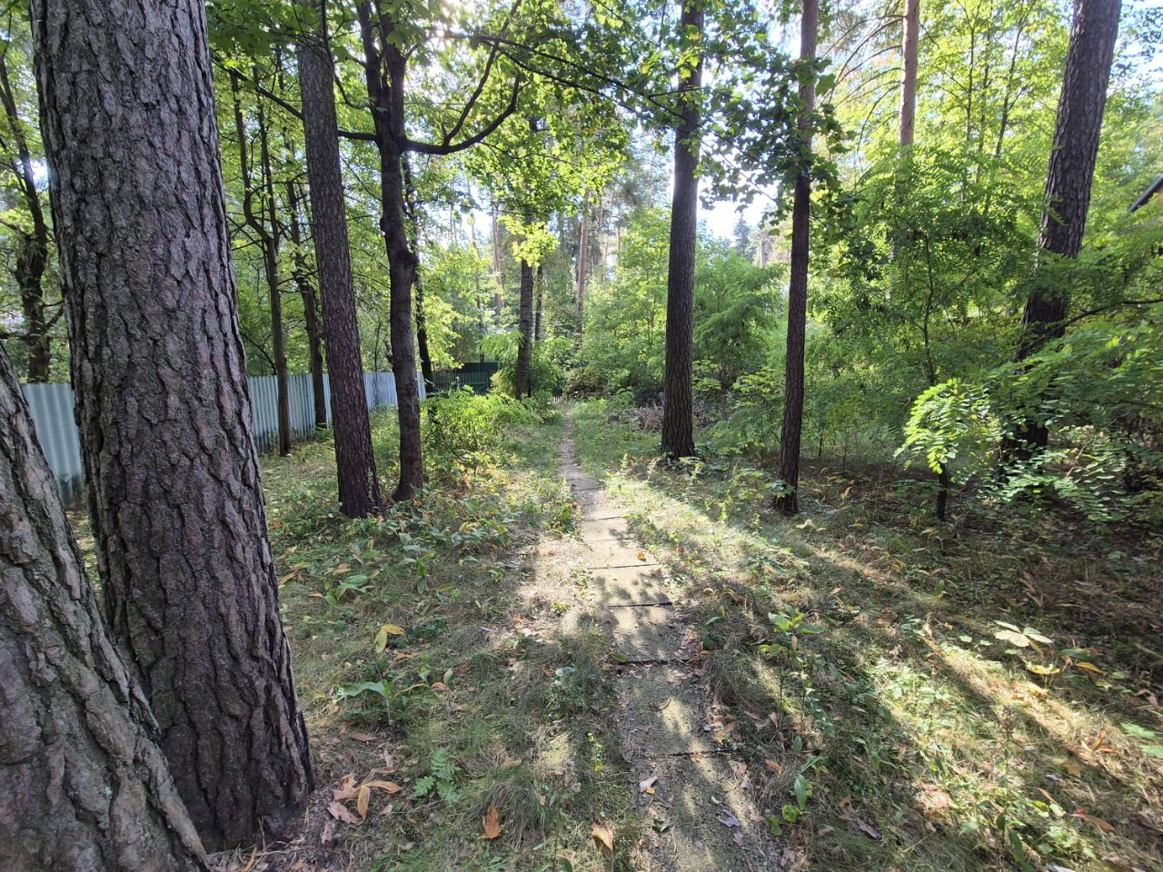На участке растёт много хвойных деревьев, участок сухой.