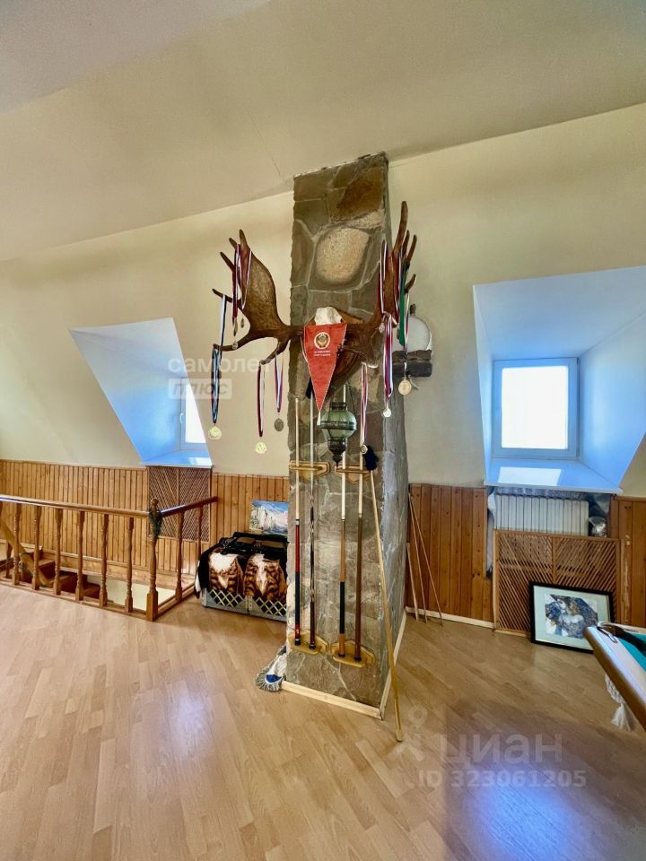 В доме: 5 спален, кабинет, кухня с гостиной, 4 санузла, каминный гостевой зал, мансарда с бильярдом, теннисным столом и спортивным залом.