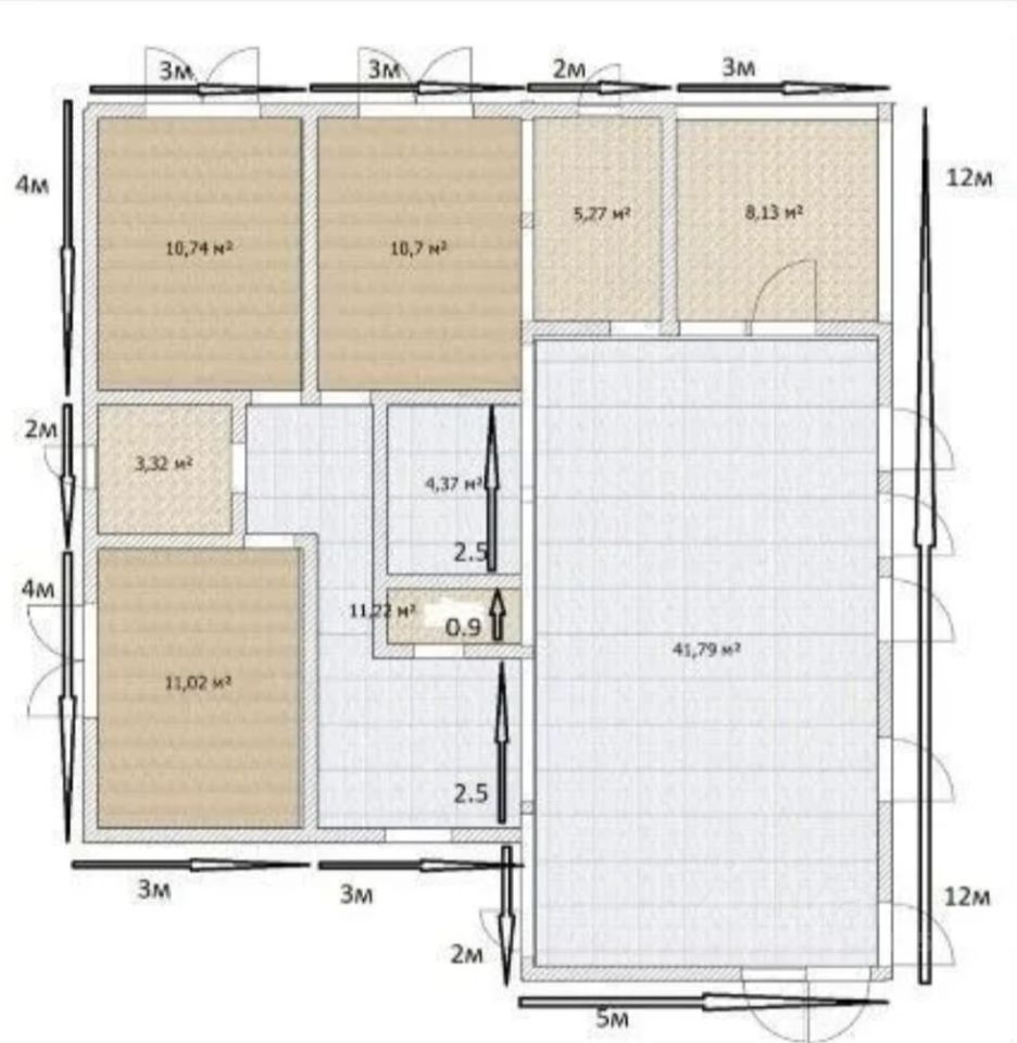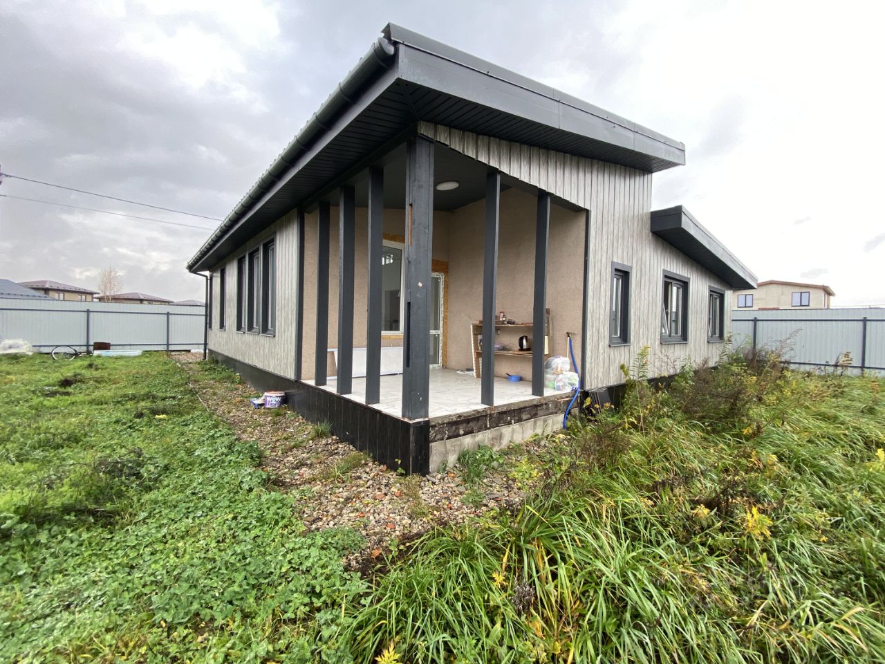 Дом одноэтажный. Кухня-гостиная 42 кв.м, 2 санузла, 3 комнаты по 11 кв.м Вce коммуникации подключены Дoм - 120 м2 Земельный участок - 6 coтoк, ровный, сухой Электричество - 3 фазы, 15 кВт, заведено в дом и разведено по точкам потребления с заземлением Водоснабжение - скважина, заведена в дом Канализация септик Отопление - электрический котел. +камин. Во всех помещениях тёплый пол Фундамент - ленточный, армированный Стены - каркас. С двух сторон осб, с наружным утепление 20 см Отделка наружная, фасад- штукатурка мраморная+ металлический сайдинг.