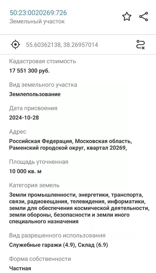 Транспортная доступность: по Егорьевскому шоссе 32 км от МКАД От участка 2,5 км до ЦКАД.