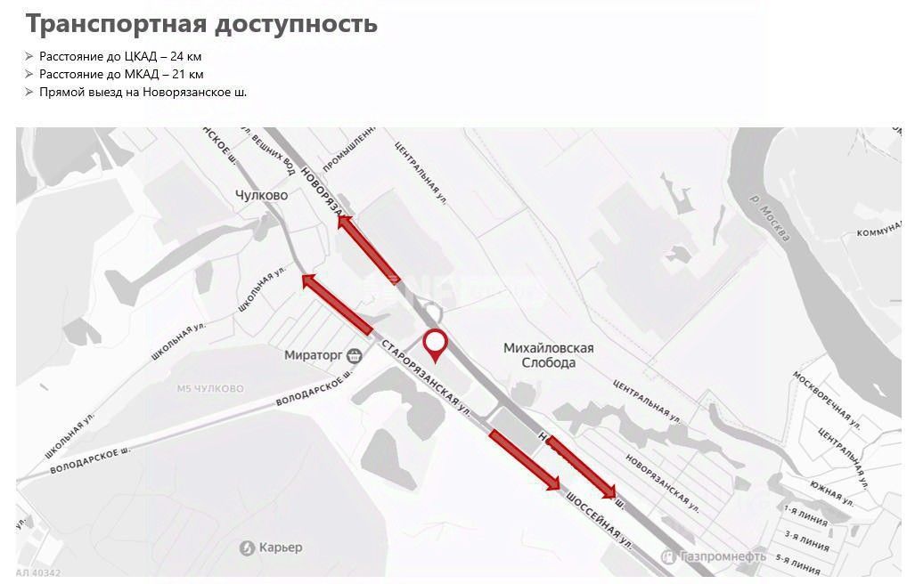 Расположение Объект находится в Москве, ЮВАО, Михайловская Слобода, с прямым выездом на Новорязанское шоссе. Удалённость: 21 км от МКАД, 24 км до ЦКАД.