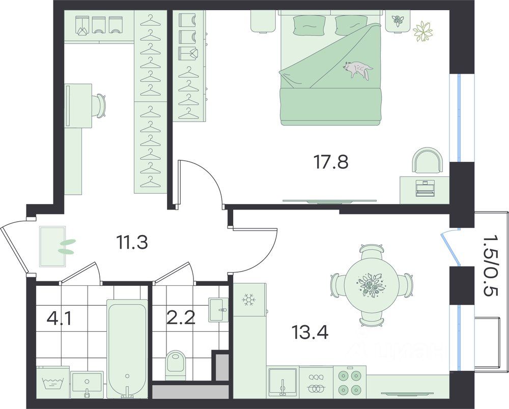 Продаётся 1-комнатная квартира в строящемся доме (Театральный, к2), срок сдачи: II-кв. 2026, общей площадью 48.5 кв.м., на 3 этаже. Бутик-квартал ''G3 Театральный''