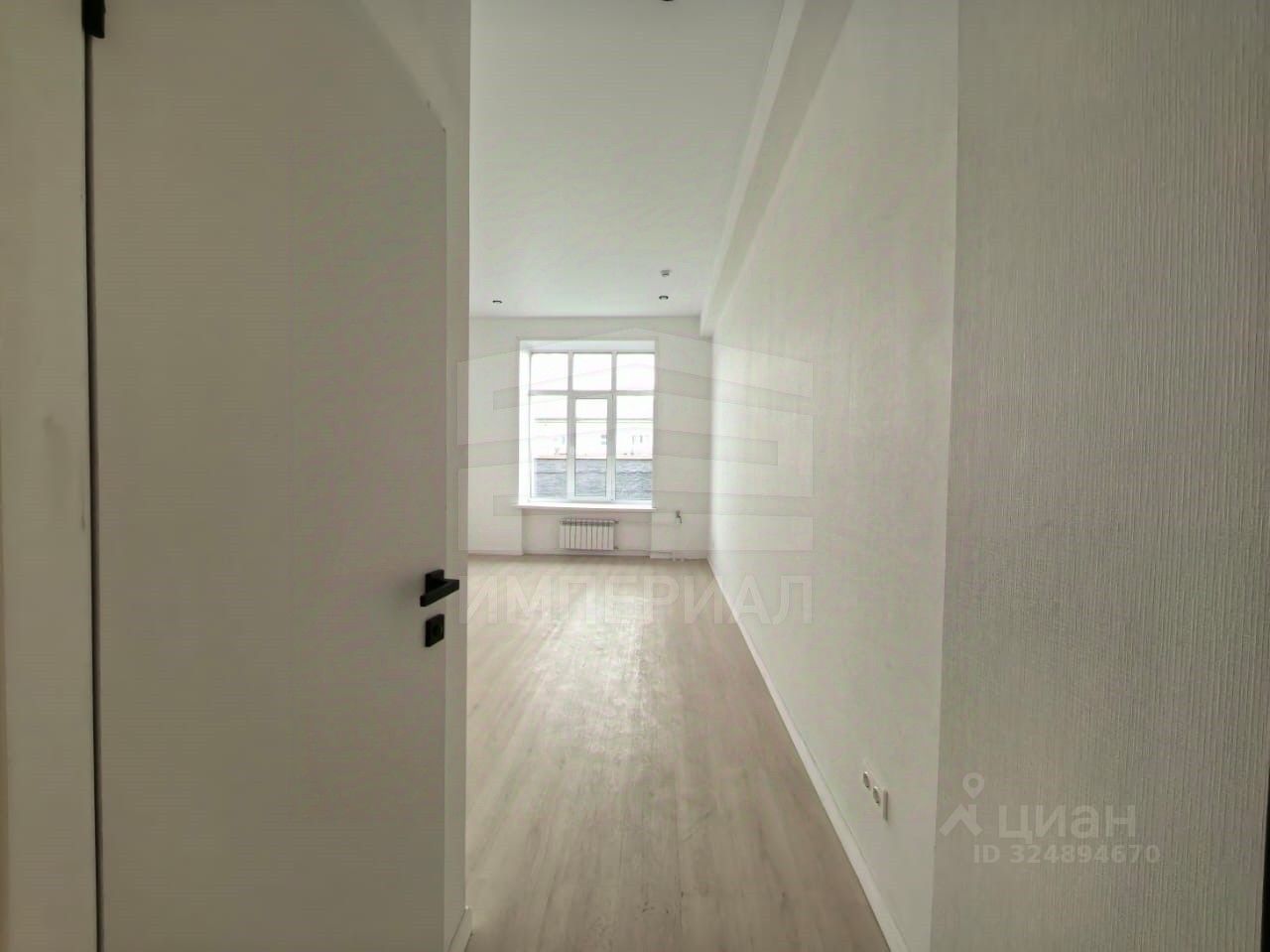 На стенах поклеены обои под покраску, на полу постелен ламинат с плинтусами и откосами. Есть вытяжная вентиляция в санузле и на кухне, выходы хв/гв, место под раковину на кухне. Кроме того, в помещениях уже есть выключатели освещения, розетки для бытовой техники и роутера, а также сделаны закладные для оптоволокна для интернета.