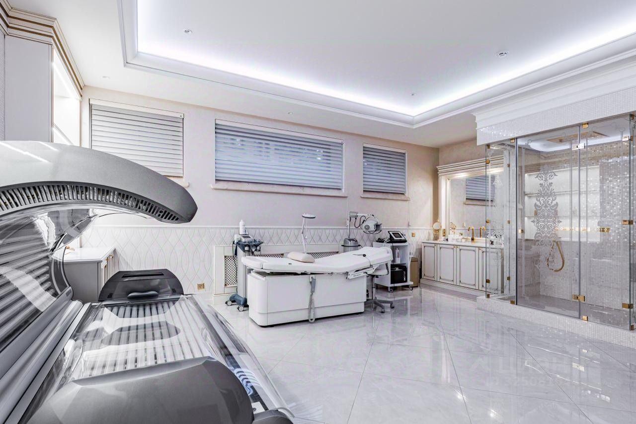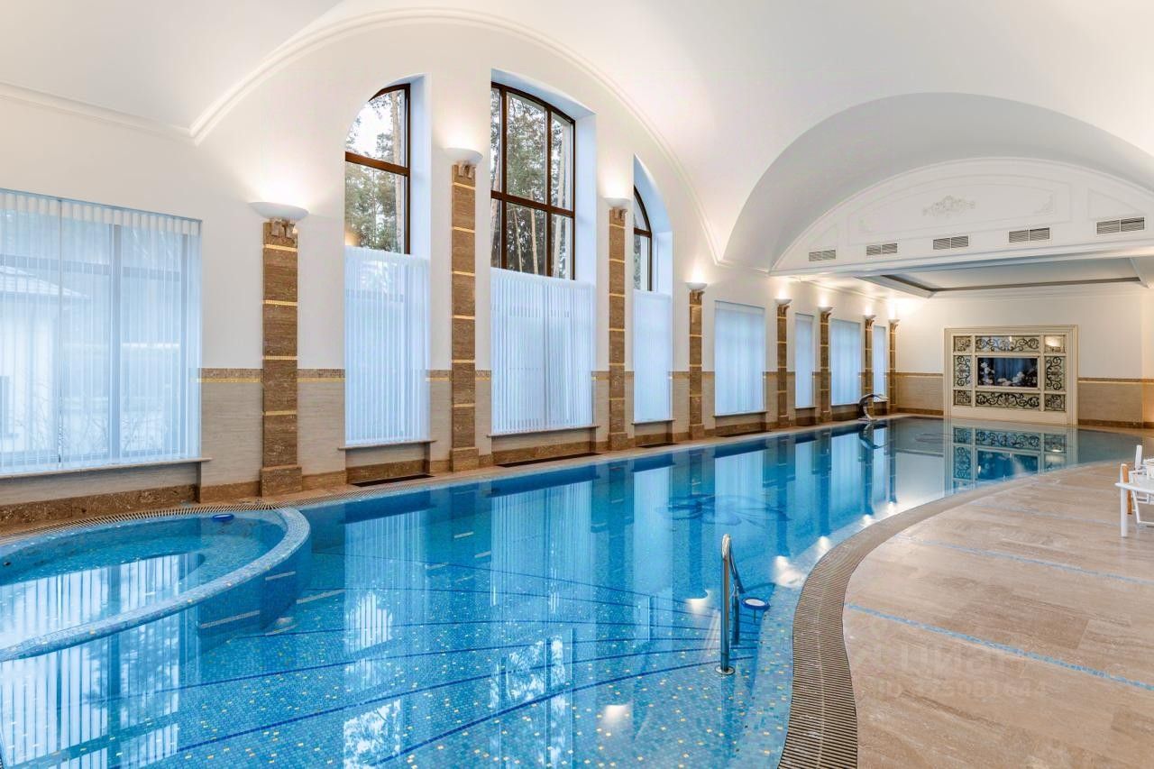 Площадь дома — 2043 м², участок — 75 соток. Резиденция полностью готова к проживанию, оснащена современными инженерными системами, в доме предусмотрен лифт, зона SPA и бассейн длиной 2225 м. На участке дополнительно расположены дом охраны площадью 380 м² и гараж на 6 автомобилей.