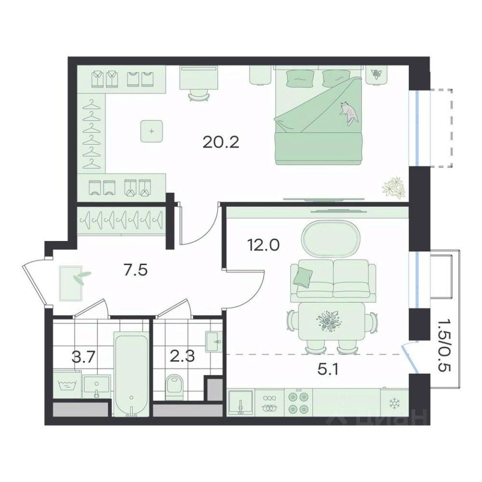 Продаётся 2-комнатная квартира в строящемся доме (Театральный, к2), срок сдачи: II-кв. 2026, общей площадью 51.3 кв.м., на 3 этаже. Бутик-квартал ''G3 Театральный''