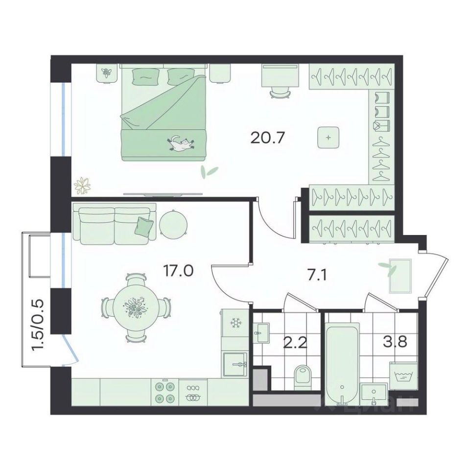 Продаётся 2-комнатная квартира в строящемся доме (Театральный, к2), срок сдачи: II-кв. 2026, общей площадью 51.3 кв.м., на 3 этаже. Бутик-квартал ''G3 Театральный''