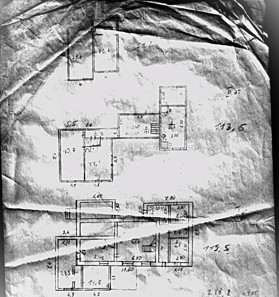 На втором три спальни 40, 22 и 24 м, оранжерея. Один совмещенный санузел. Лоджия.