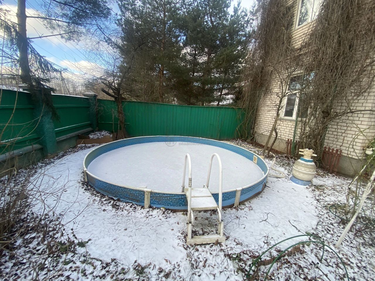 От калитки до дома навес. Открытый бассейн. Зона барбекю. Веранда.