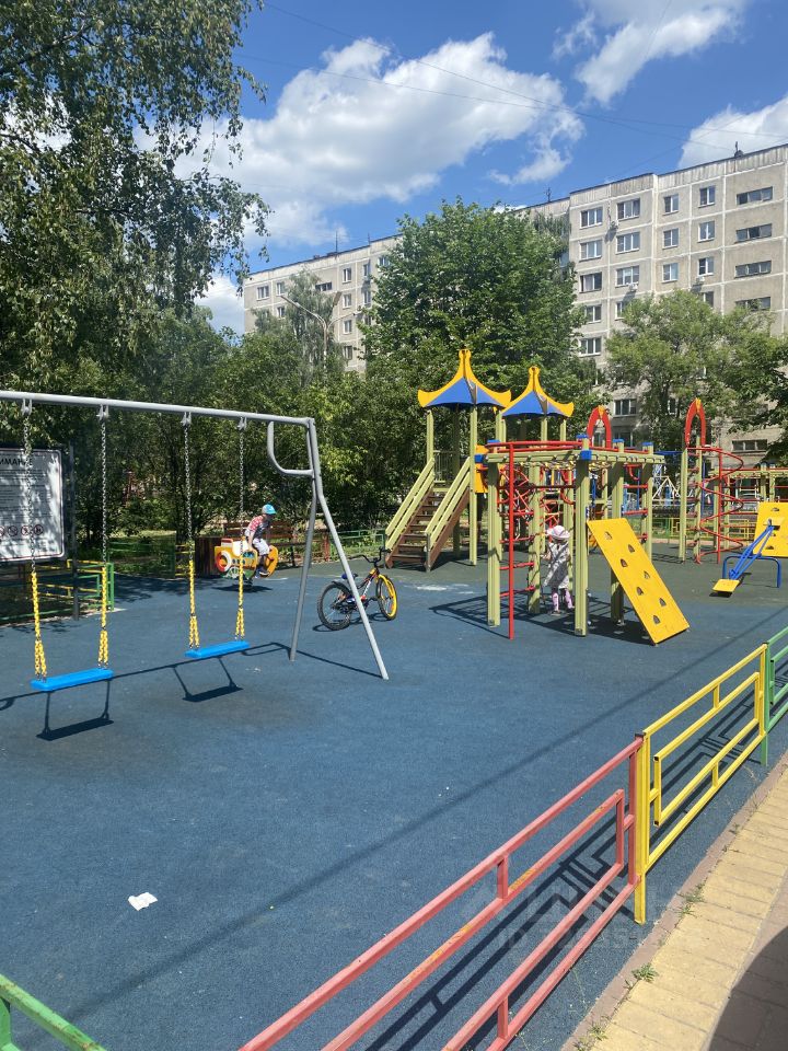 Ухоженный благоустроенный двор с детскими площадками и зоной для отдыха.