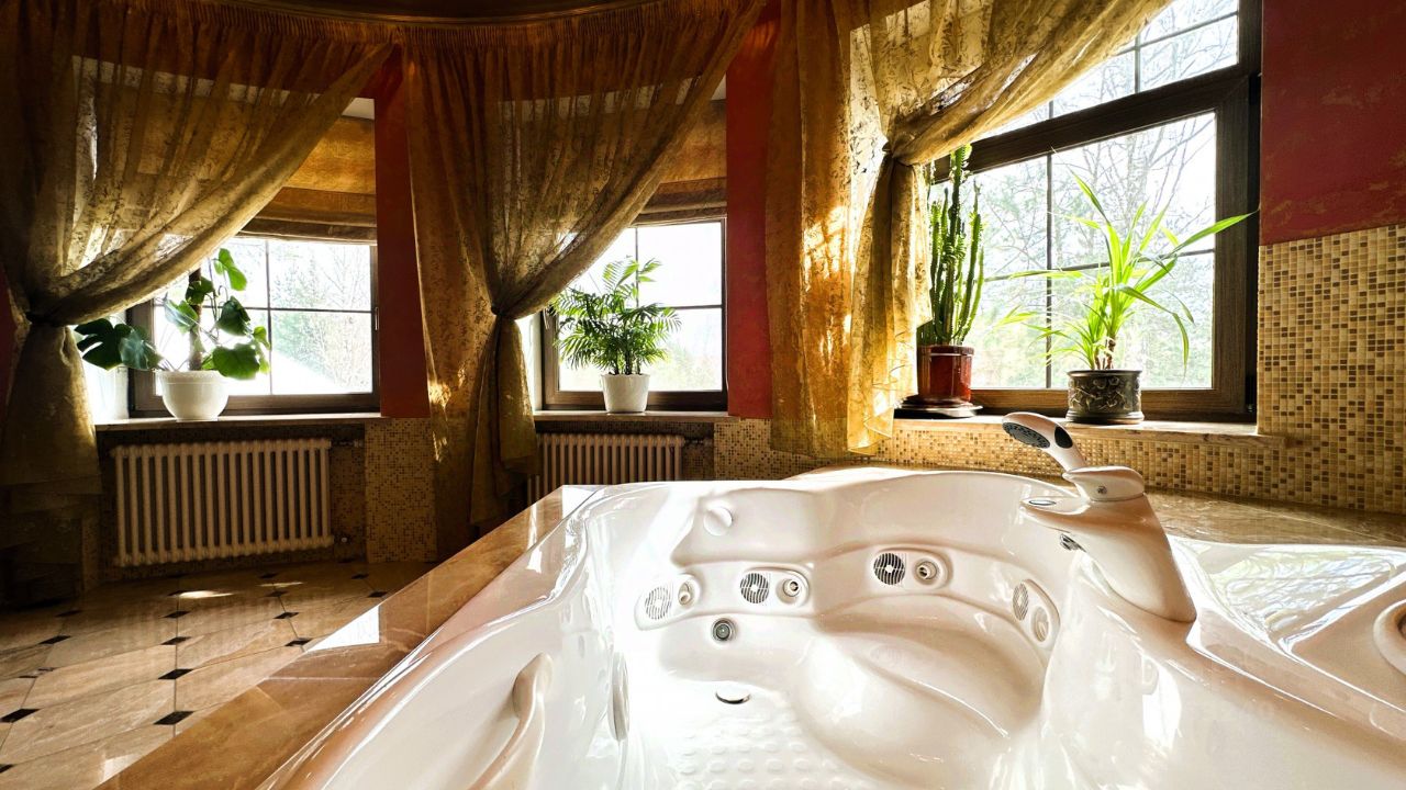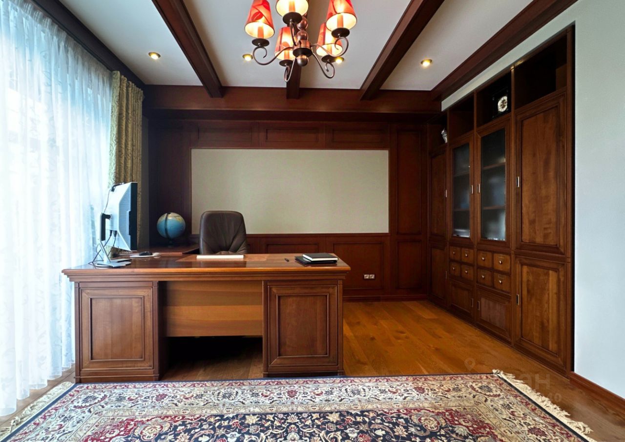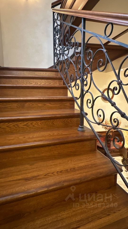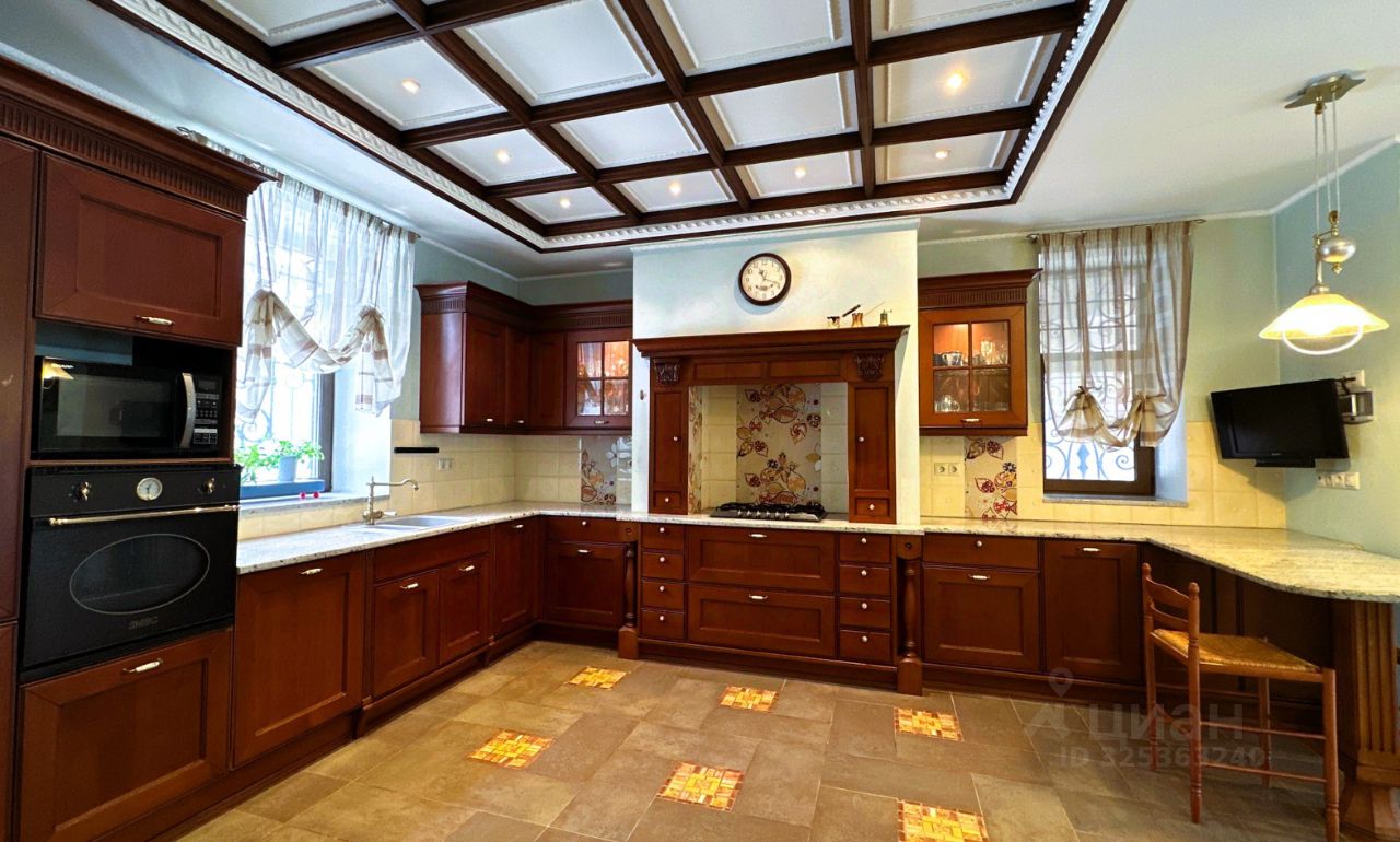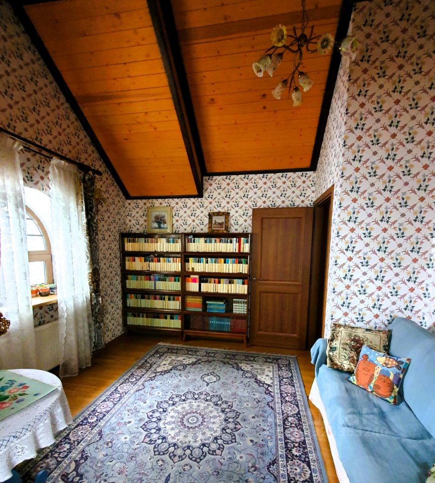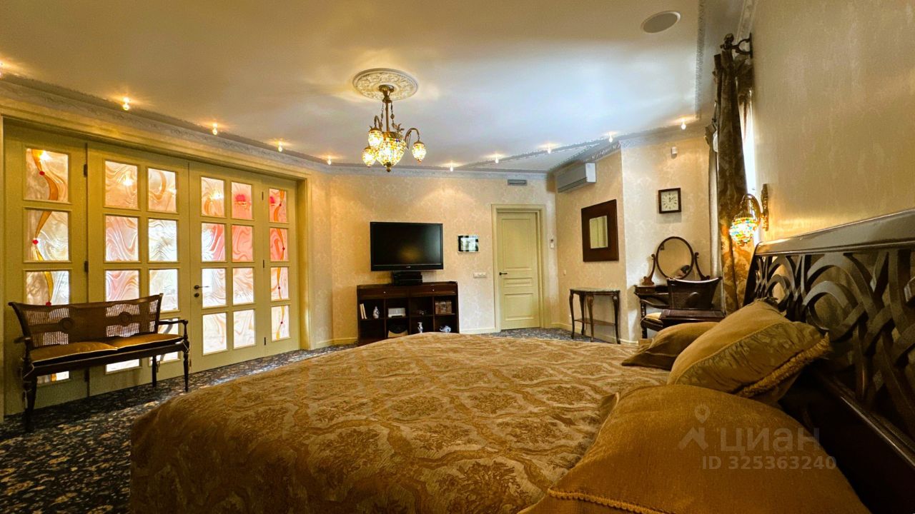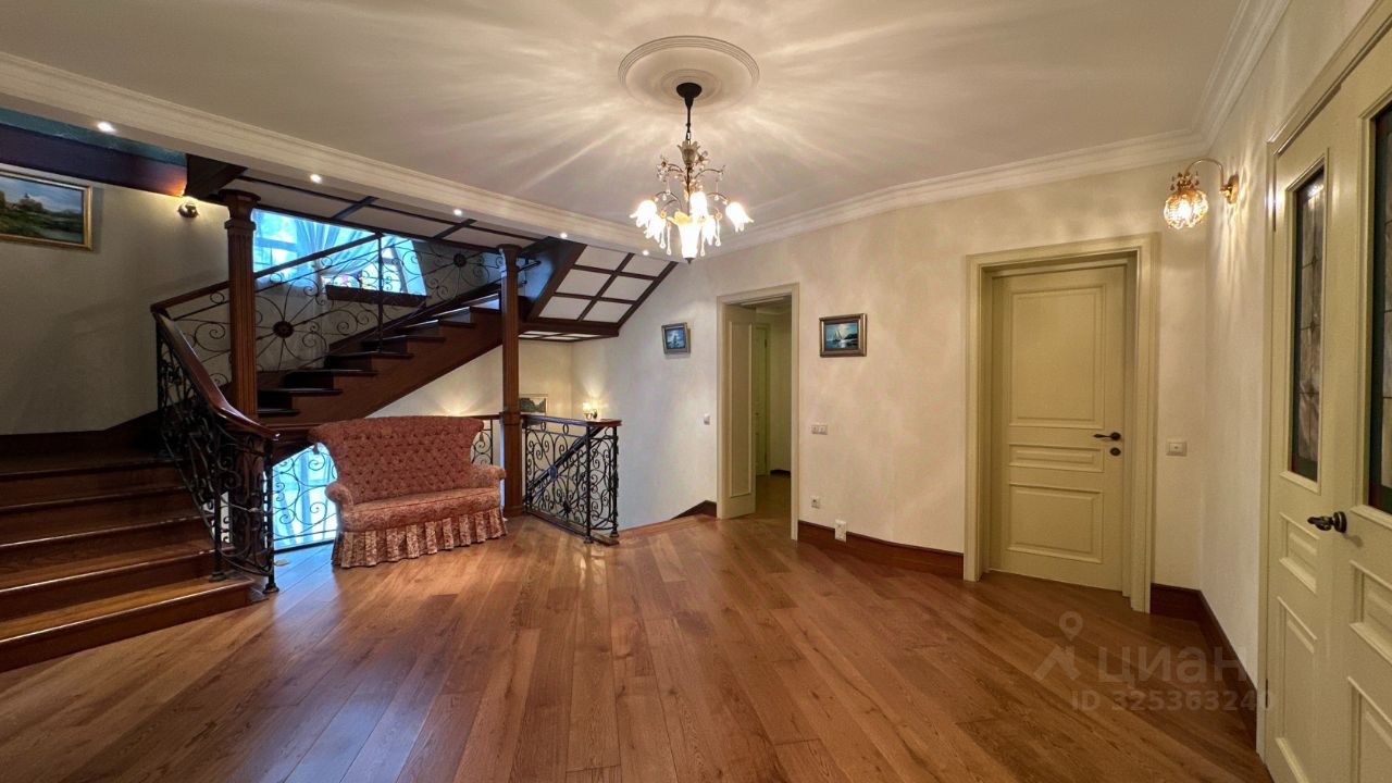 Об основном доме Дом имеет два этажа и мансарду. На первом этаже расположены просторная гостиная и кабинет-мастерская с камином и большими окнами, которые обеспечивают естественное освещение и создают уютную атмосферу. Через холл первого этажа можно попасть в кухню-столовую. В холле также находятся гостевой санузел, гардеробная, котельная и дополнительный выход на улицу. Кухня оборудована газовой плитой, оформленной в виде очага, а столовая зона расположена в эркере, что придаёт ей особый шарм и простор. В кухне также есть дополнительное помещение для размещения морозильника и хранения продуктов. На первом этаже предусмотрено водяное отопление пола, а пол покрыт натуральным мрамором. На втором этаже находятся библиотека, кабинет, мастер-спальня с ванной комнатой и джакузи, гостевая спальня с санузлом и гардеробная. Все эти помещения объединены просторным холлом второго этажа. Мансардный этаж отведён под зону отдыха с бильярдным столом, барной стойкой и мягкой мебелью. Здесь также расположены спальня и ванная комната, а также хозяйственная зона с прачечной и кладовой. В интерьере дома на втором этаже использованы дубовые доски, износостойкие ковровые покрытия с разнообразными орнаментами, тиснёные обои, витражи в дверях, мраморные подоконники в тон обоев и штор каждой комнаты, качественные ткани и портьеры. Английские классические камины и элегантная дубовая лестница с ажурным кованым ограждением создают единый образ этого дома. По всему дому установлена система приточно-вытяжной вентиляции. К дому примыкает тёплый гараж площадью 77 квадратных метров с комнатой отдыха, туалетом и душем, отдельным выходом на участок и розеткой для зарядки электромобиля. Входные зоны и зона въезда оснащены видеокамерами. Все строения подключены к резервной линии электроснабжения, а в отдельной постройке установлен генератор с автоматическим включением и мощные стабилизаторы для защиты от перепадов напряжения. Водоснабжение обоих домов обеспечивается многоступенчатой системой фильтрации. В доме есть элементы умного дома: высокоскоростной интернет с резервной линией, проведённой в цоколь дома, проводной интернет во всех комнатах, Wi-Fi, телефонные розетки, пневморозетки для центрального пылеудаления, аудиопроводка на всех трёх этажах со встроенными колонками, внутренняя сигнализация и сигнализация протечки в санузлах.