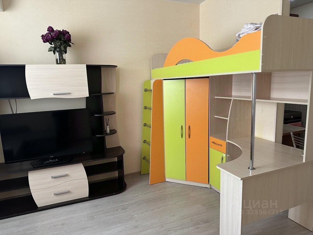 Уютная, светлая, просторная студия со всей необходимой мебелью и бытовой техникой для комфортного проживания. Окна выходят во двор. Большая лоджия. С/У совмещенный.