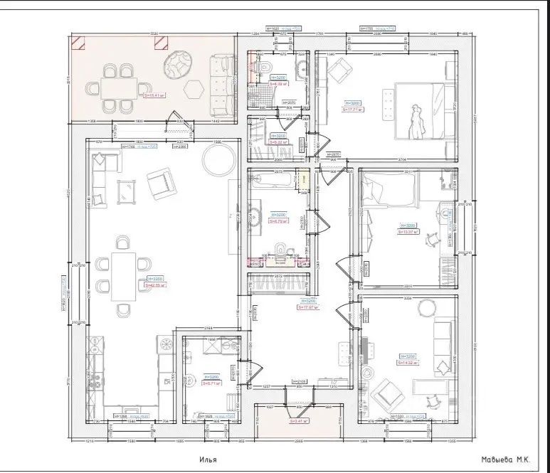 Внутреннее состояние: Сделана стяжка под финальное покрытие. В каждую комнату заведено электричество без фиксированных точек для возможности установки розеток и выключателей в любое место. Стены подготовлены механизированной штукатуркой.